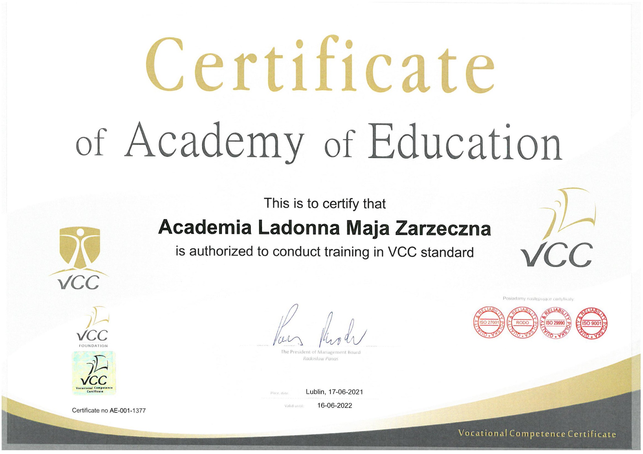 1. Akademia Edukacyjna prowadząca kształcenie zgodnie z systemem VCC.