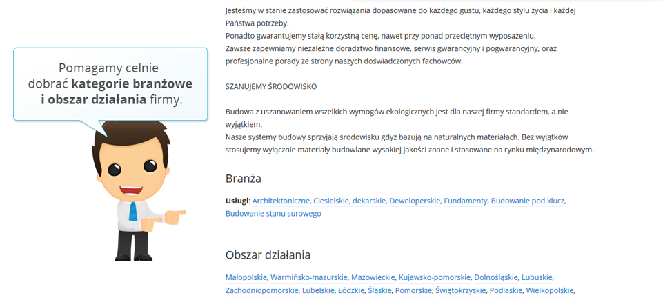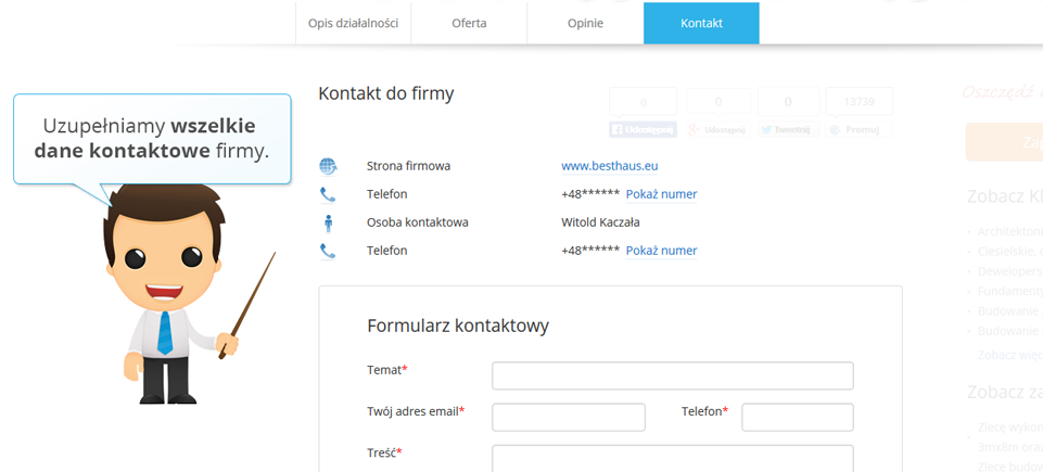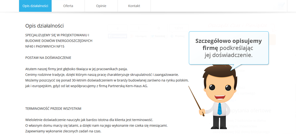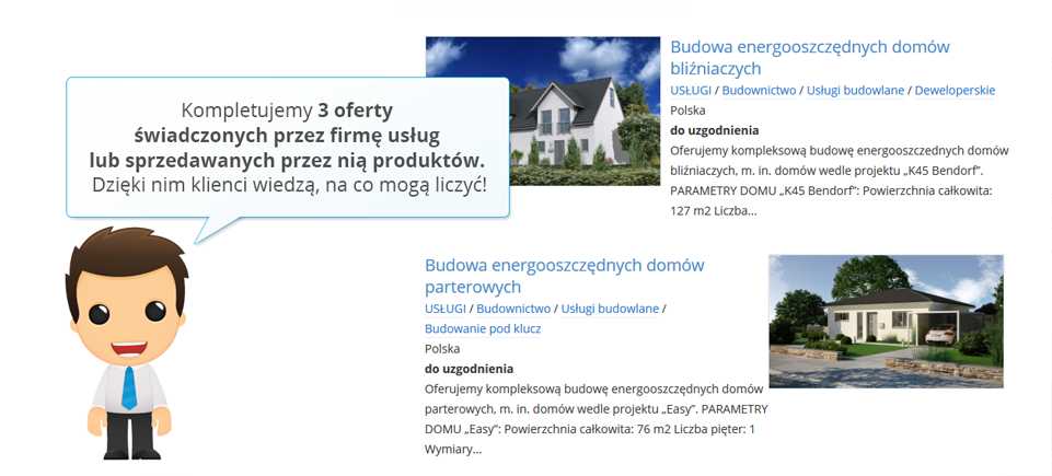 Doradca Oferteo.pl wypełni Twój profil w Oferteo tak, aby zawierał funkcjonalny opis działalności oraz przedstawiał zalety i korzyści ze współpracy z Tobą.