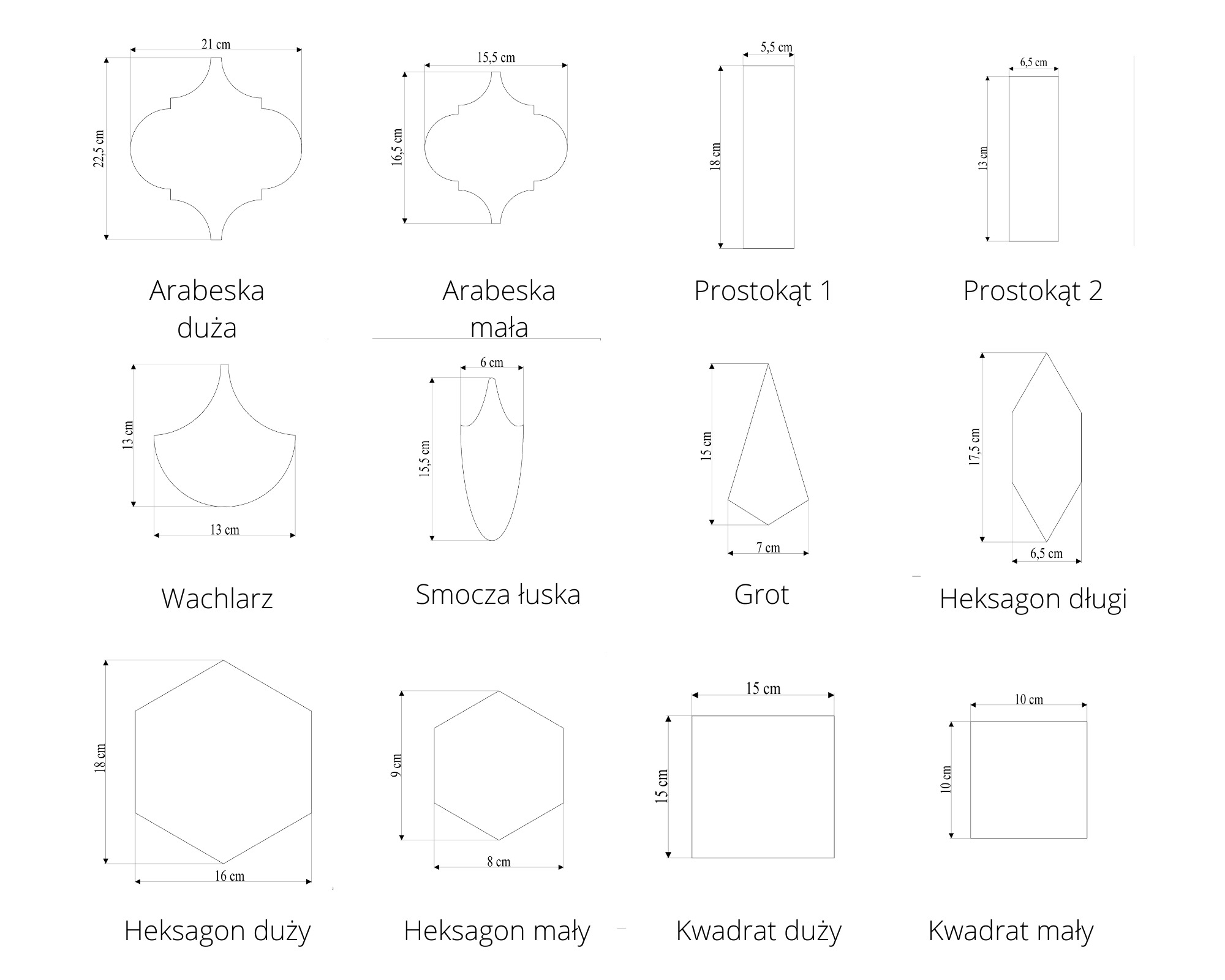 Dostępne kształty oraz przykładowe realizacje dostępne w galerii zdjęć. Można zain...spirować się naszymi projektami lub zlecić nam wykonanie kafelek od podstaw według własnego pomysłu.