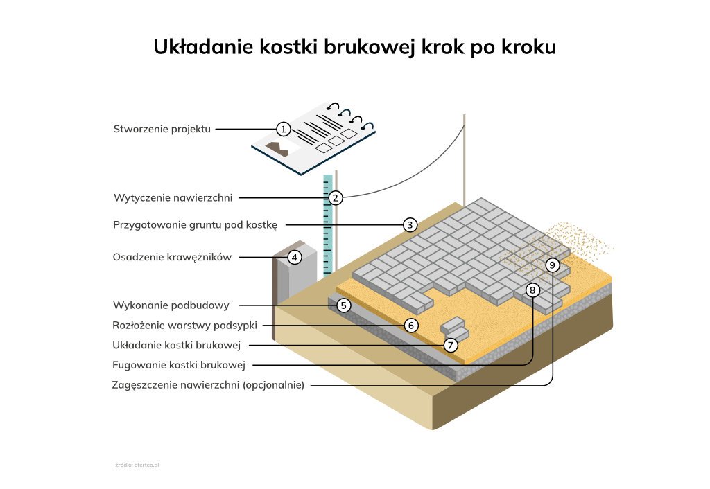 Infografika: Etapy układania kostki brukowej – schemat poglądowy