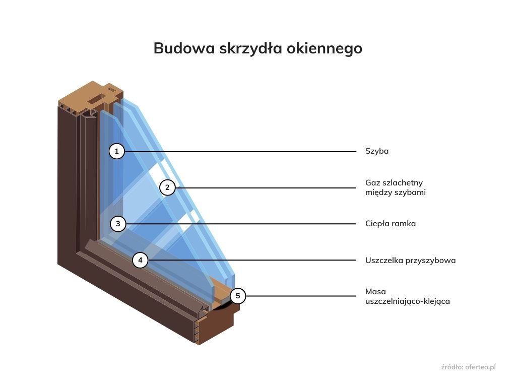 Warto wiedzieć, że na okna składają się pakiety dwuszybowe lub trzyszybowe, które są ze sobą zespolone. Między szybami znajdują się najczęściej: absorbent wilgoci, ramka dystansowa oraz gaz szlachetny (zazwyczaj: argon).