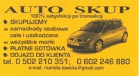 -Działamy na terenie Warszawy i okolic. Na zakupione samochody zawsze spisujemy umowę kupna-sprzedaży. Zachęcamy do współpracy!!! Czekamy na oferty: , E-MAIL.mariola.lowicka@gmail.com