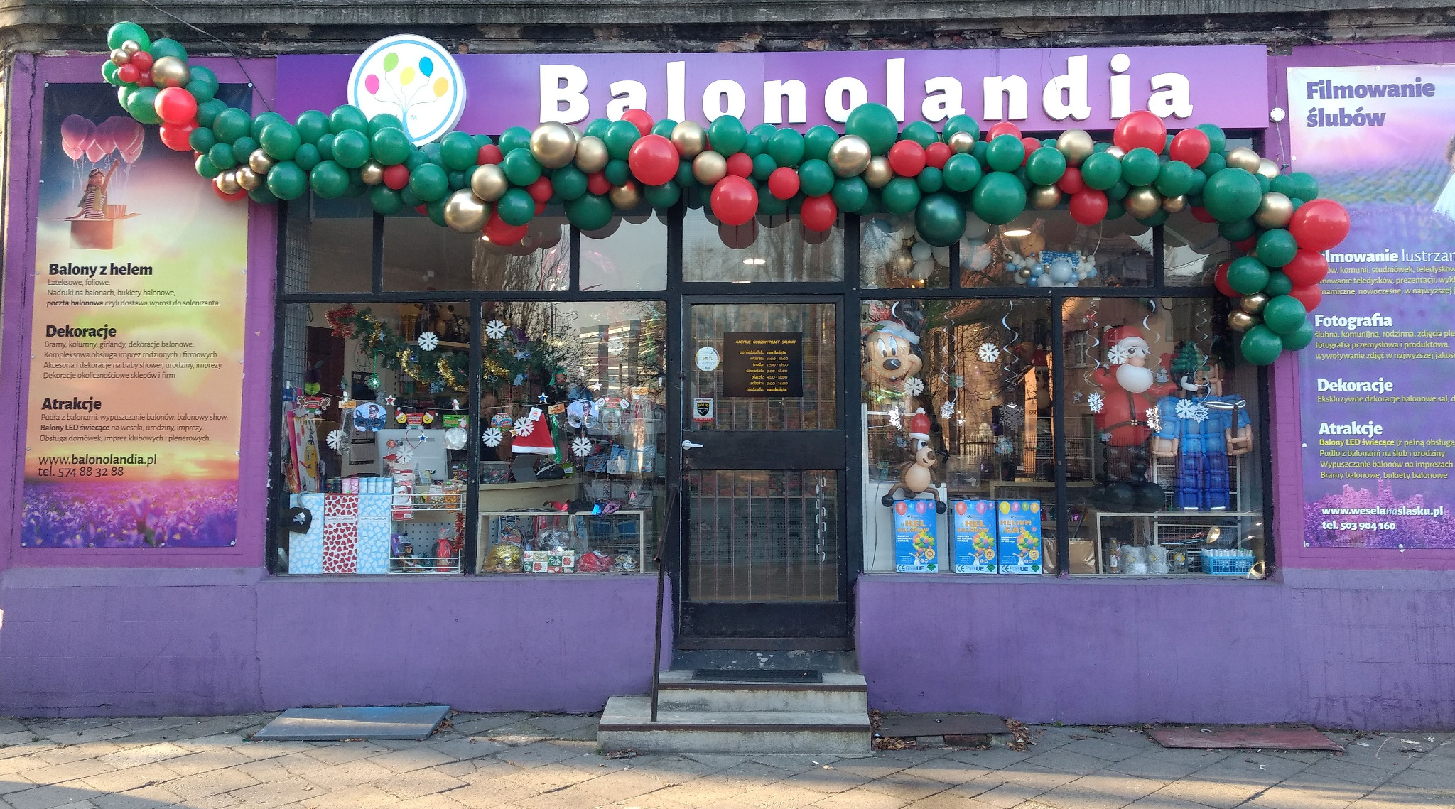 Bramy balonowe na wejście do lokalu zgodnie z ustaleniami. Podana cena przewiduje standardowe wejście (2,5 x 3m). Przy wymiarach znacząco przekraczających podane wartości cenę ustalamy indywidualnie.