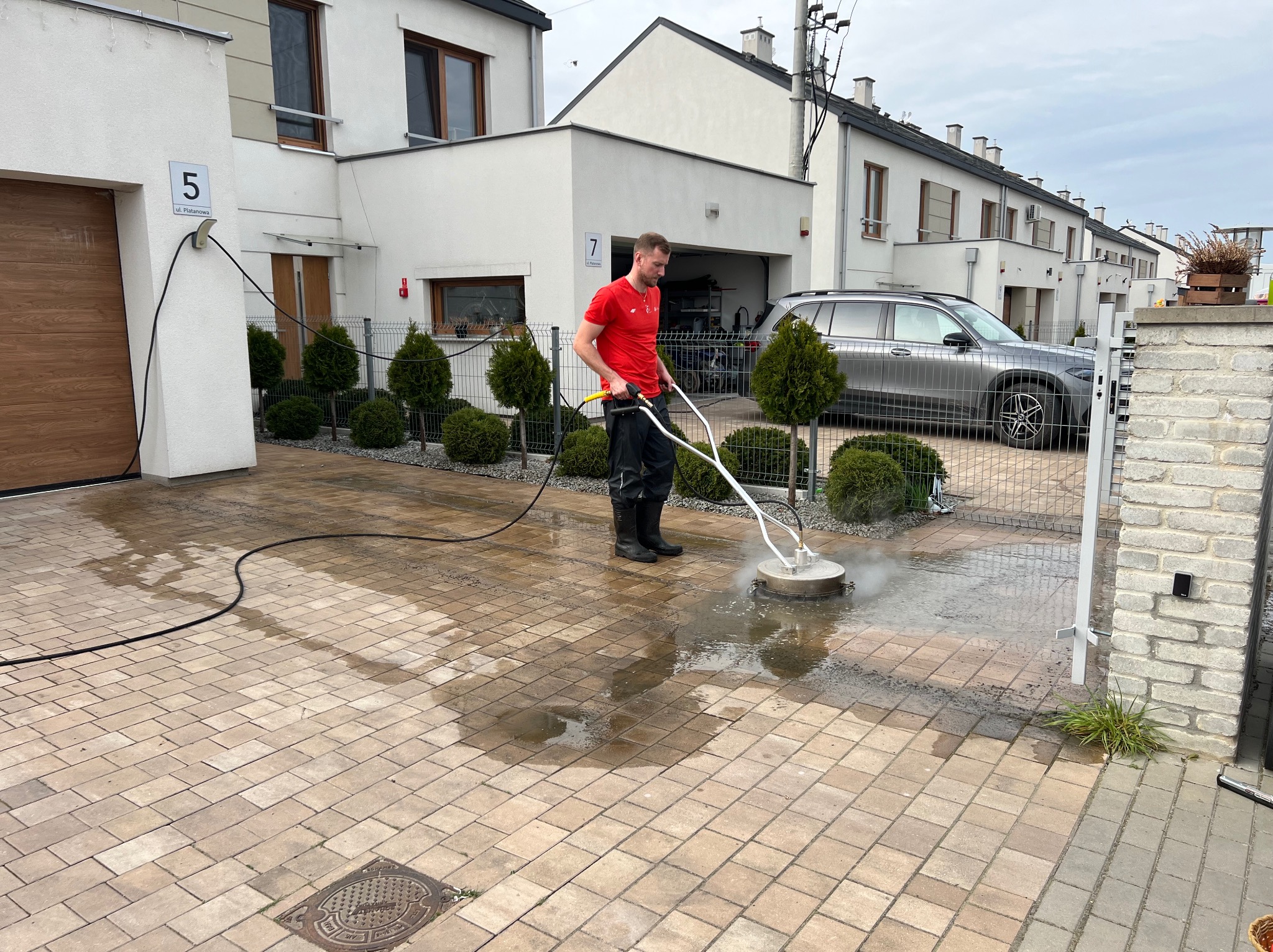 - Mycie kostki brukowej — czyste podjazdy, tarasy i ścieżki.