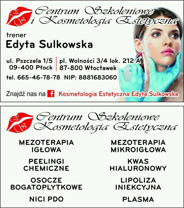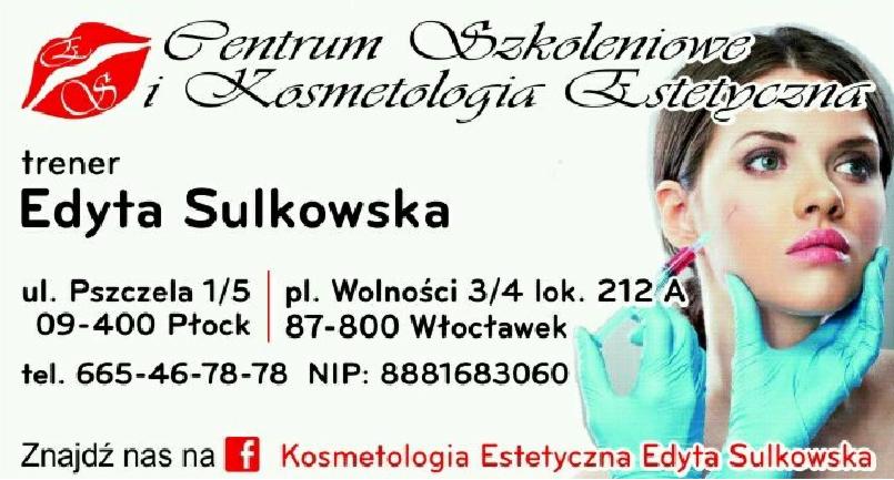 Centrum Szkoleniowe i Kosmetologia Estetyczna Edyta Sulkowska została założona w 2016 roku.Firma mieści się na ul.Pszczelej 1/5 w Płocku i posiada filię we Włocławku -Plac Wolności 3/4 lok.212A.