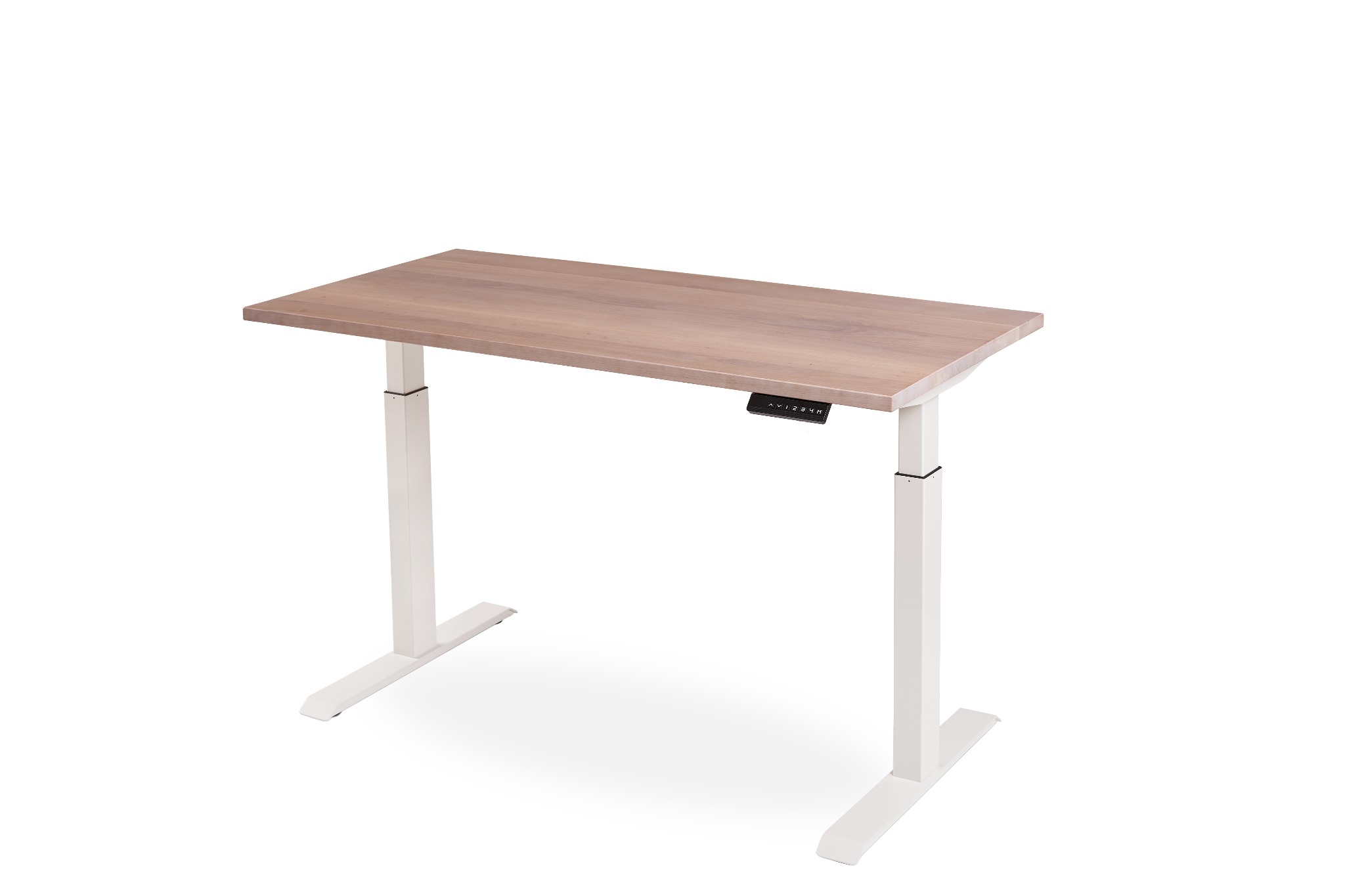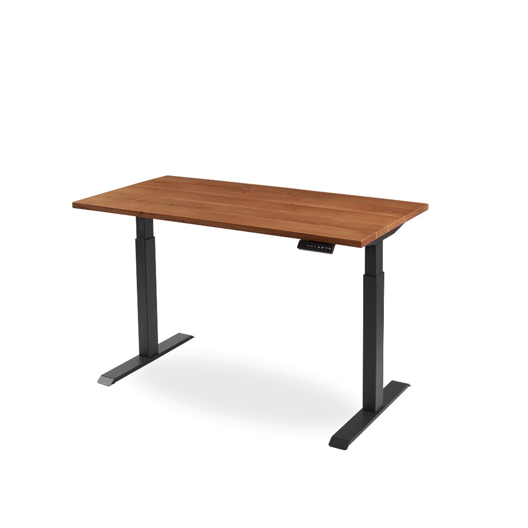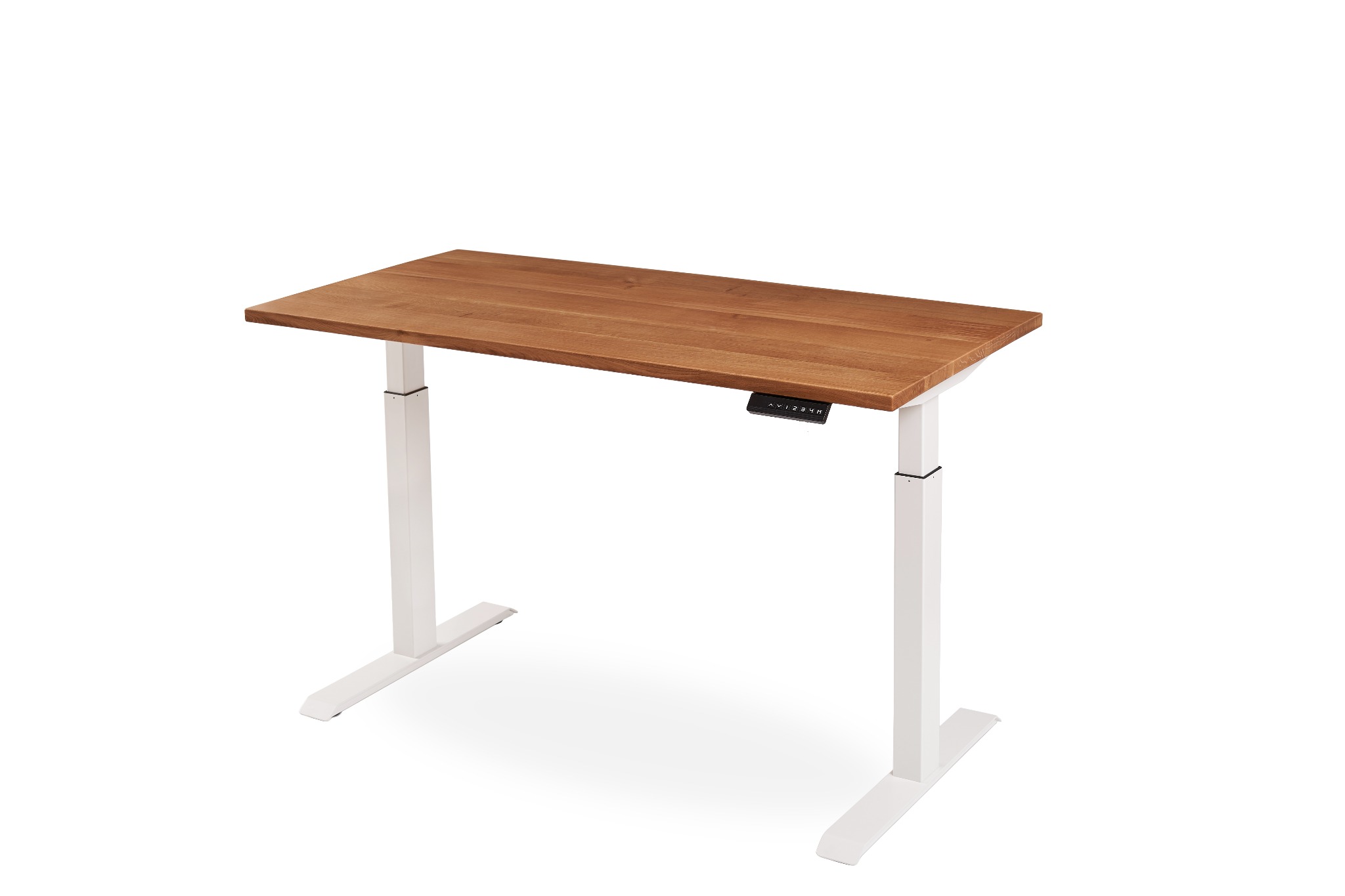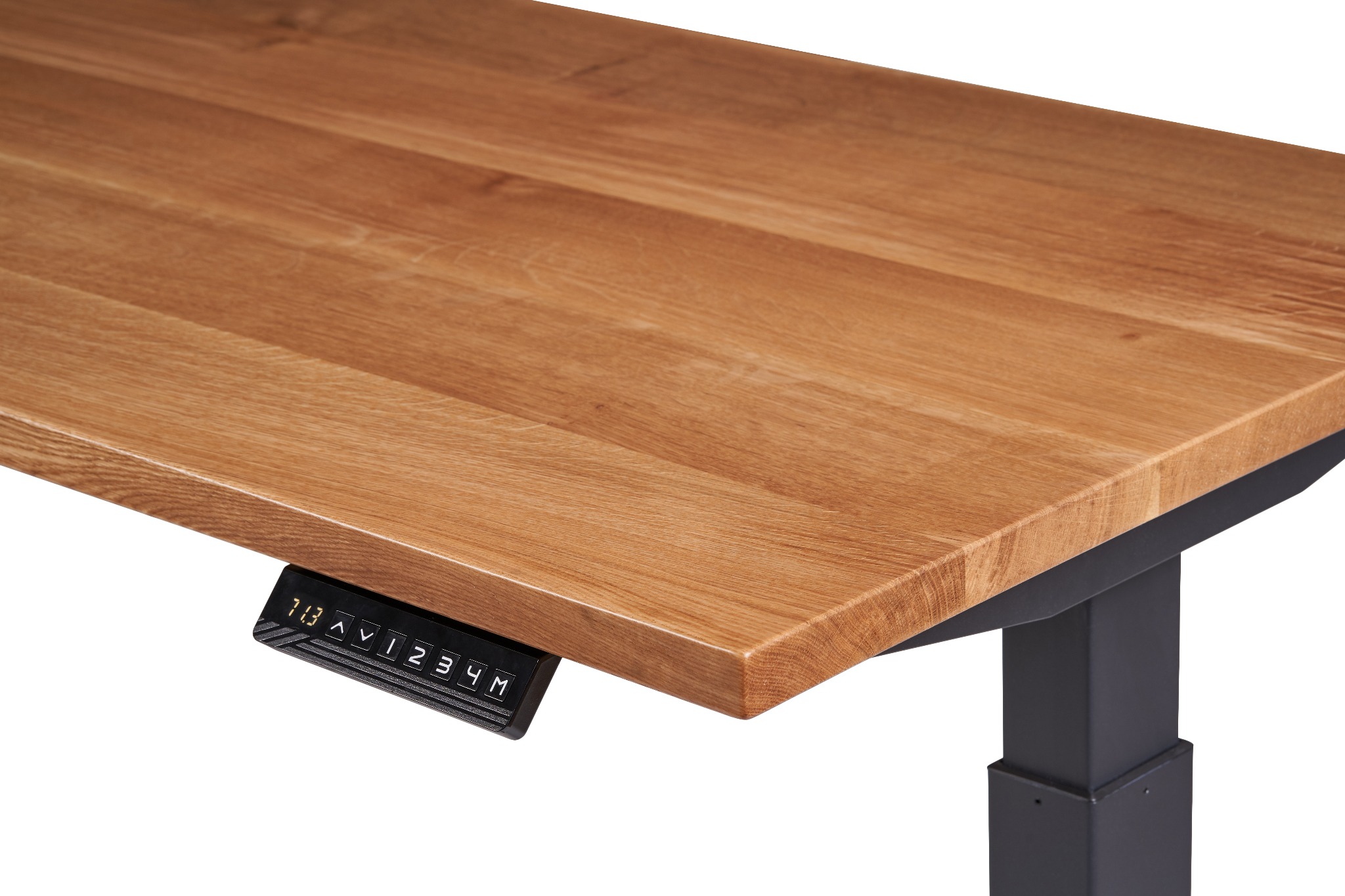 Biurko regulowane elektrycznie. Stelaż wyposażony w dwa bardzo ciche silniki oraz panel pozwalający na zapisanie do 4 wysokości. Blat wykonany z litego dębowego drewna, zabezpieczony bardzo trwałym lakierem. Produkt najwyższej jakości.