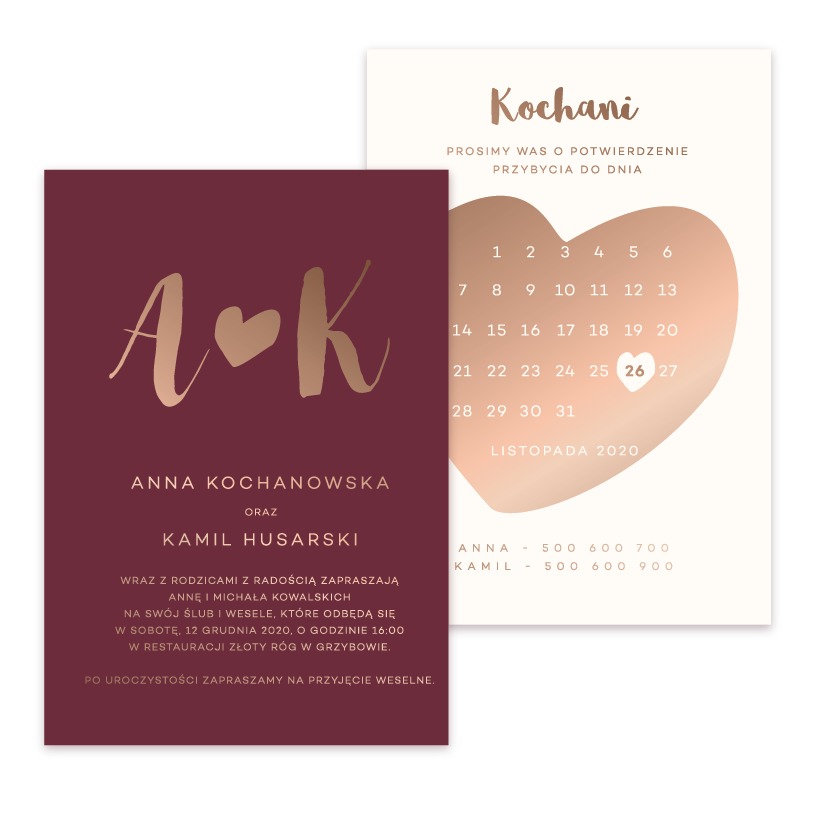 Projektujemy papeterię ślubną w nowoczesnym stylu. Eleganckie zaproszenia ślubne, winietki, numerki na stół, księgi gości, mapy stołów - pełna oprawa graficzna wesela to nasza specjalność. Oferujemy zaproszenia tradycyjne, zaproszenia złocone, zaproszenia składane i jednokartkowe, zaproszenia z wkładką. Zapraszamy do zapoznania się z naszą ofertą na http://www.papeteriaslubna.pl/