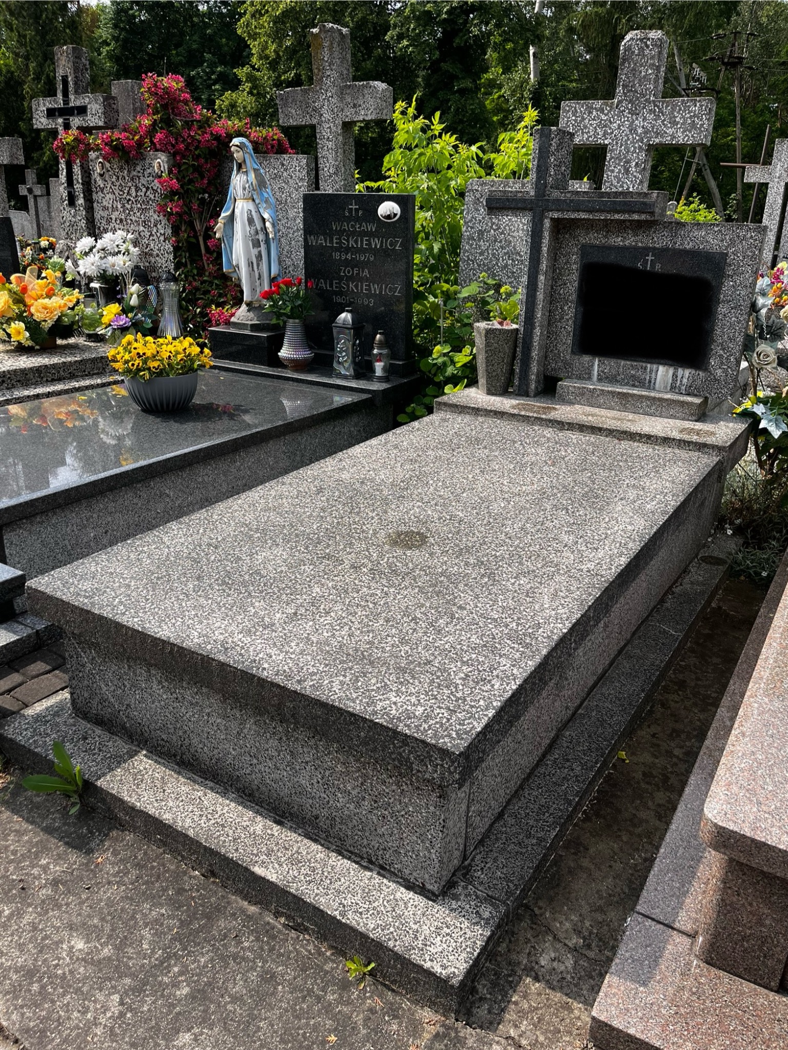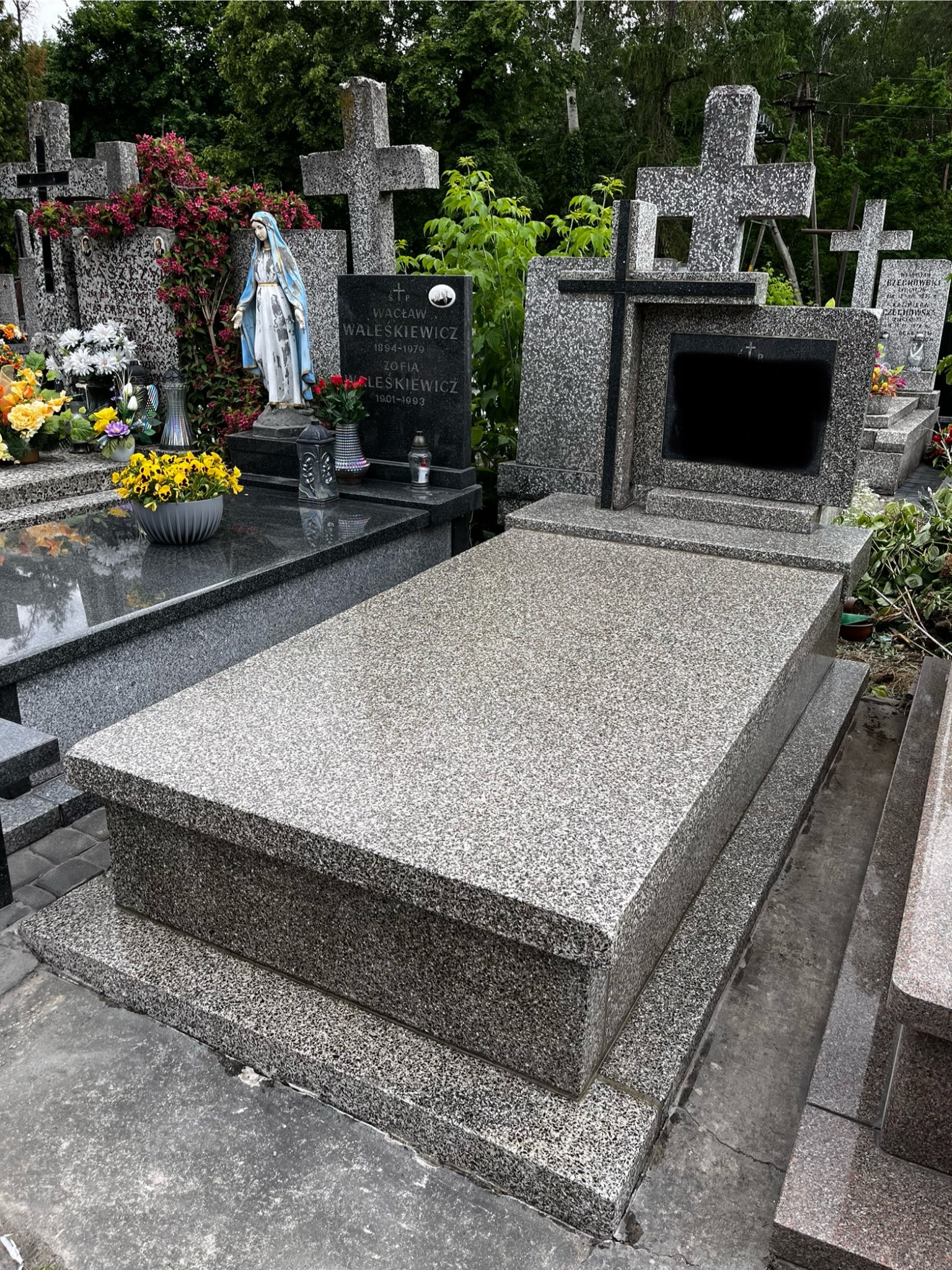 Na zakończenie ...całość została zaimpregnowana specjalistycznym środkiem, który zamyka pory kamienia, podkreśla jego naturalny kolor oraz skutecznie zabezpiecza powierzchnię przed wpływem warunków atmosferycznych. Dzięki zastosowaniu powłoki hydrofobowej nagrobek staje się łatwy w utrzymaniu czystości – brud i woda nie wnikają w strukturę materiału, co znacząco wydłuża efekt świeżości i estetyki.