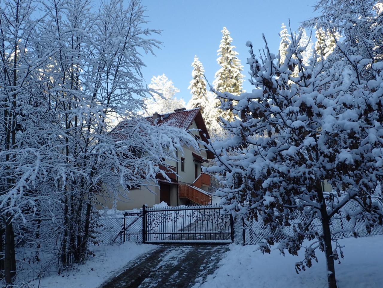 Oferuję na wynajem krótkoterminowy dom 6-cio osobowy, położony w lesie nad strumykiem, z dala od głównej drogi. Wymarzony dla miłośników ciszy i spokoju. Na pierwszej kondygnacji znajduje się przestronny pokój dzienny z kominkiem, ubikacja oraz duża, dobrze wyposażona kuchnia Z pokoju dziennego wychodzi się na przestronny, częściowo zadaszony taras z leżakami i grillem. Na poddaszu znajdują się trzy dwuosobowe sypialnie oraz przestronna łazienka z prysznicem. W przyziemiu znajduje się garaż oraz pomieszczenie techniczne z pralką. Dojazd lokalną drogą asfaltową, regularnie odśnieżaną w zimie. Dom położony jest w połowie drogi pomiędzy Krakowem i Zakopanym, stąd stanowi doskonałą bazę startową zarówno dla wycieczek górskich jak i do zwiedzania pobliskich miejscowości. Na terenie obiektu możemy zorganizować warsztaty fotograficzne, lub (przy sprzyjających warunkach) wspólne oglądanie nieba przez teleskop.