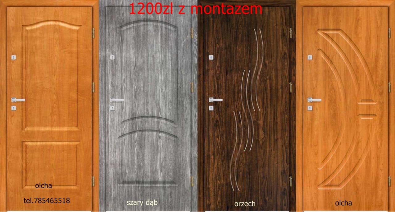 Drzwi wewnątrz klatkowe to koszt 850zl z profesjonalnym montażem, w skład wchodzi: