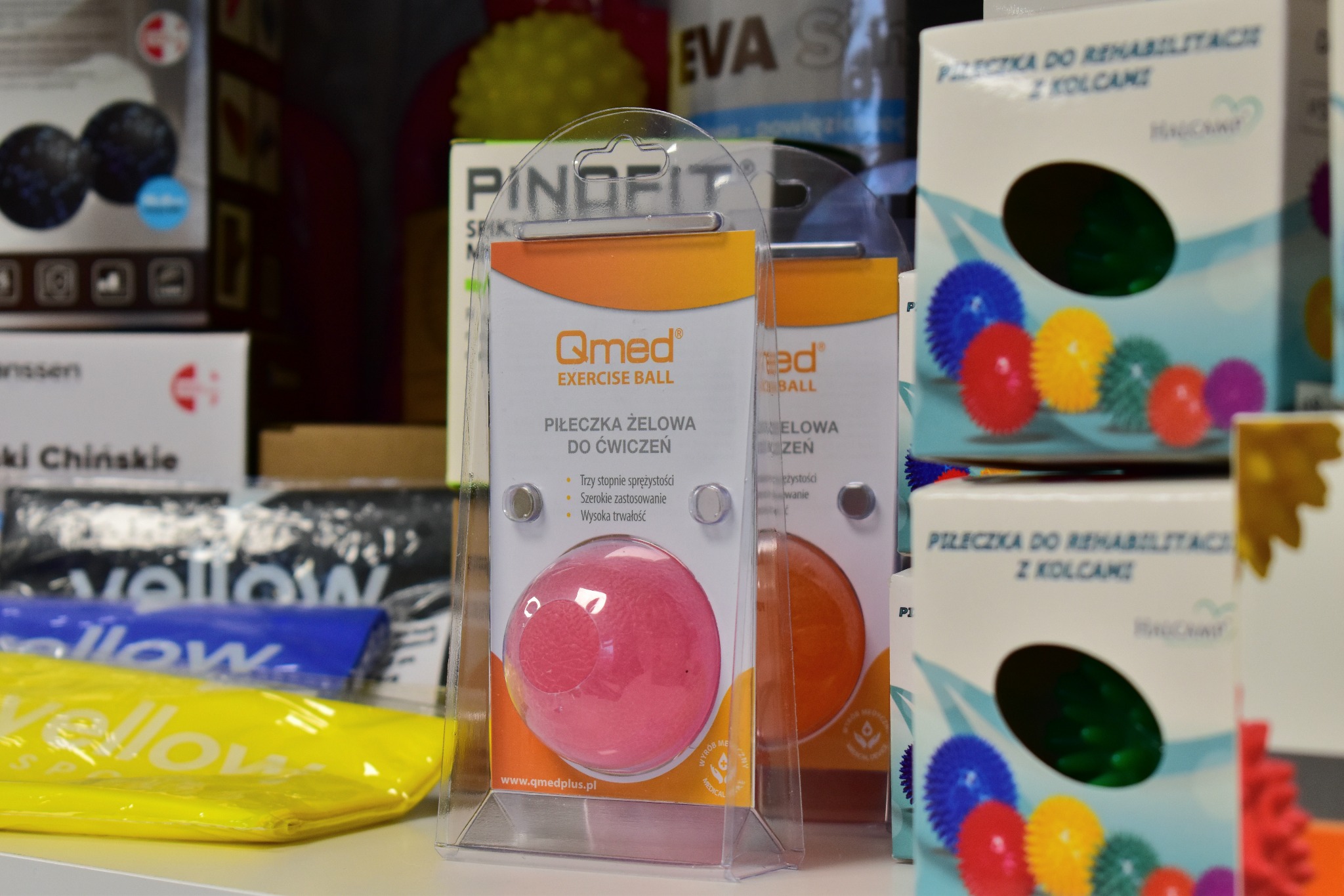 Artykuły rehabilitacyjne: piłeczki, piłki, dyski sensoryczne, wałki itp