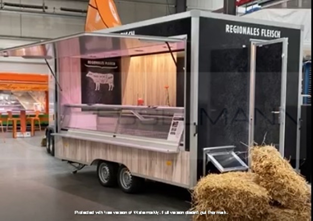 Jest to przyczepa, która posiada w standardzie jedno okno sprzedażowe po prawej stronie oraz drzwi wejściowe umieszczone centralnie od strony dyszla.