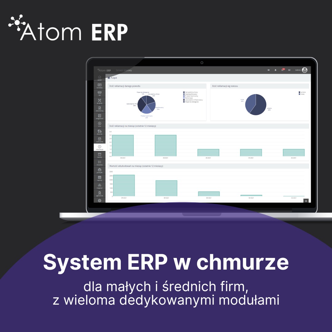 Atom ERP jest systemem ERP dostępnym w chmurze. Zapewnia narzędzia pomocne w prowadzeniu, zarządzaniu i automatyzacji firmy. Dla wielu branż oferuje dedykowane moduły dodatkowe, ze specjalistycznymi rozwiązaniami. Atom ERP pomaga na wielu płaszczyznach i w wielu dziedzinach funkcjonowania firmy.
