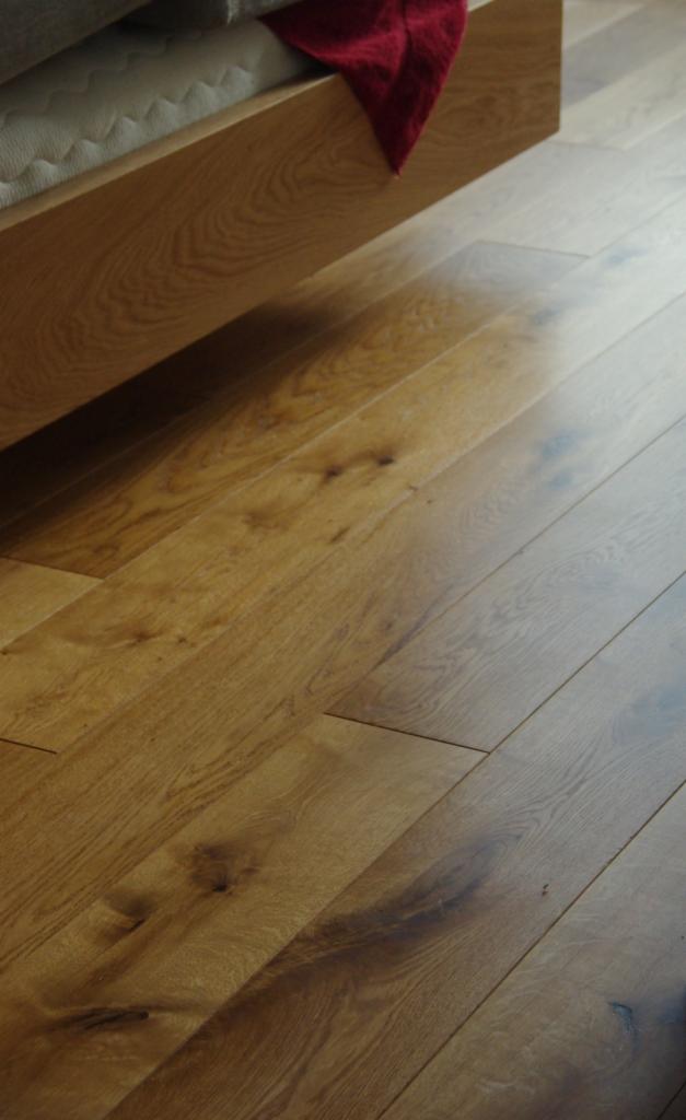 Niepowtarzalne wykończone powierzchni olejem i bejcą, umożliwia montaż naszej podłogi