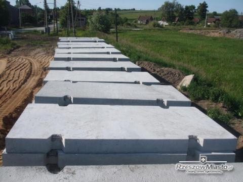 Płyta wykonana z betonu B25 oraz podwójnie zbrojaną siatką z drutu o przekroju 8mm.