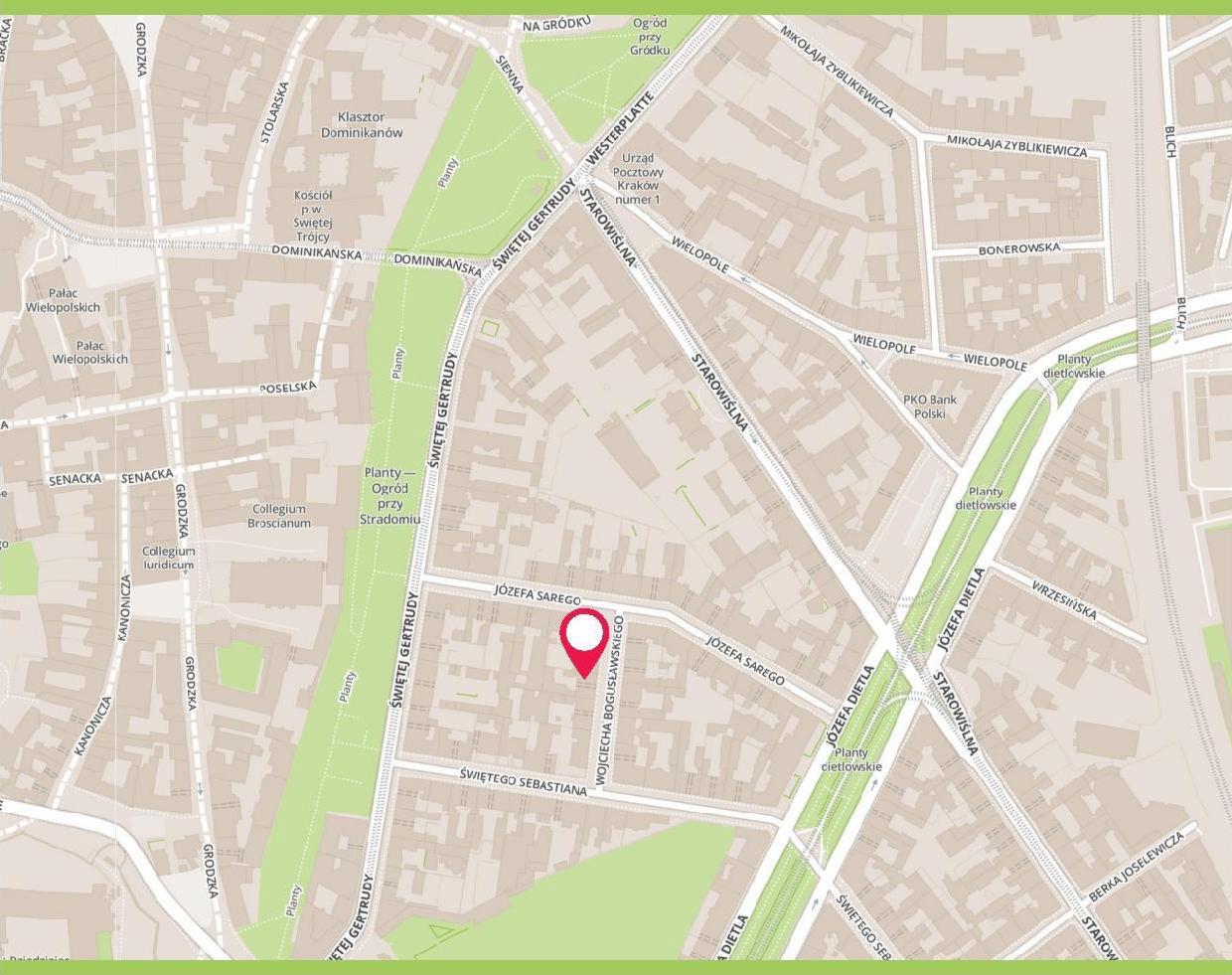 Gabinet mieści się przy ulicy Wojciecha Bogusławskiego 5/15 (dojazd od ulicy św. Sebastiana)