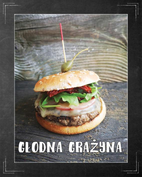 Poznaj nasze burgery -Tłustego Janusza wyróżnia bekon i ser wędzony, Głodną Grażynę ser mozzarella i sos bazyliowy, Typowy Seba koniecznie z prażoną cebulką i serem cheddar, a Getburger zaspokoi mniejszy głód.