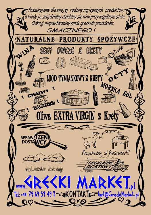 Nasza specjalność to Specjalizujemy się w imporcie produktów z Grecji takich jak:. Oliwki, Oliwa, Chałwa, Sery. zlecenia realizujemy na terenie całej Polski. ( głownie województwo Mazowieckie).