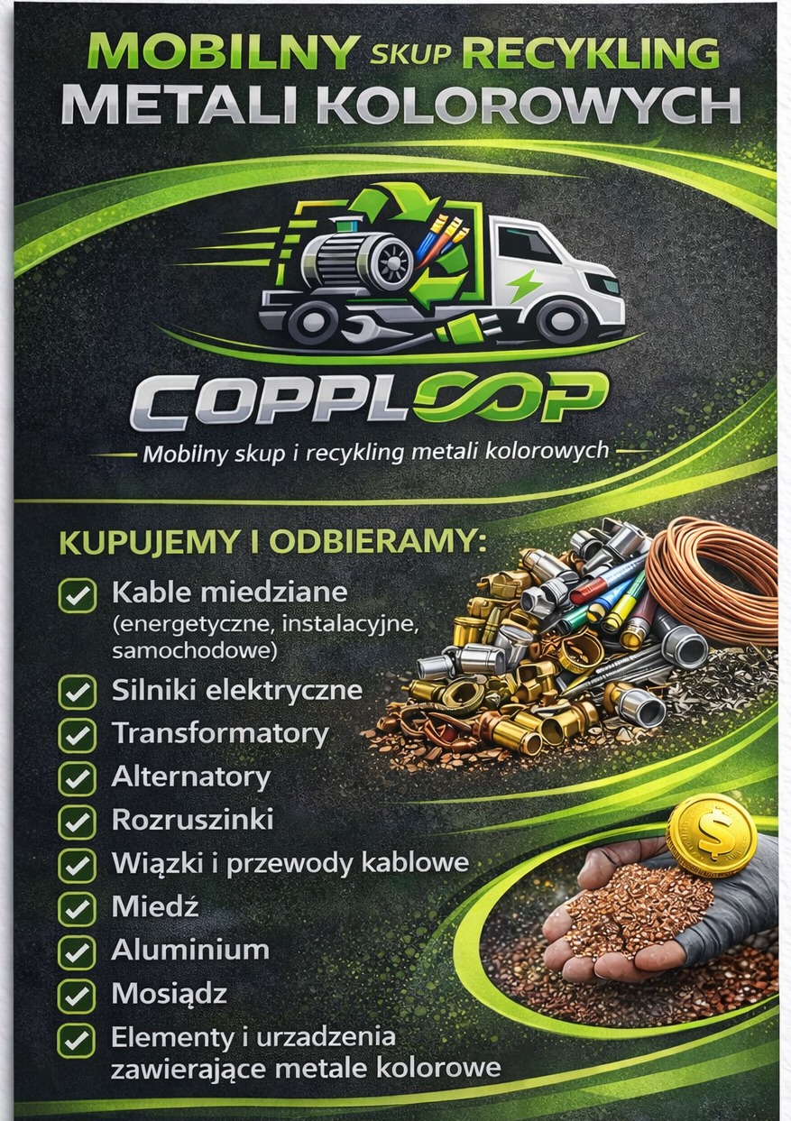COPPLOOP to mobilny skup metali i elektrozłomu działający na terenie Opola i okolic.