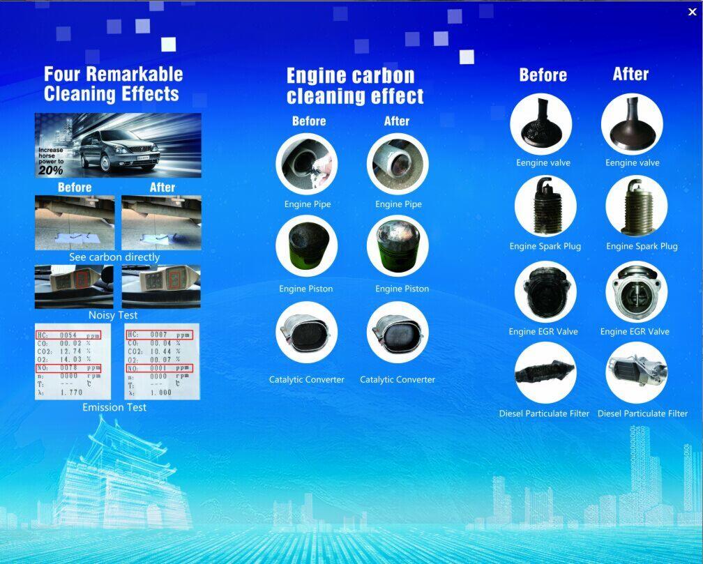 Usuwa osady węglowe w komorze spalania, kolektorze wydechowym,EGR i DPF, oczyszcza świece zapłonowe, końcówki wtryskiwaczy i grzybki zaworów.