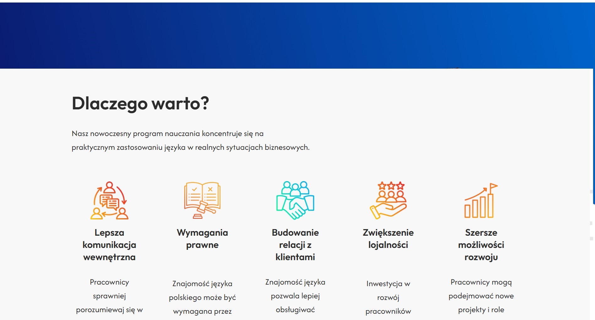 • Doświadczeni lektorzy: Nasi nauczyciele to eksperci w nauczaniu języka polskiego jako obcego, z doświadczeniem w pracy z klientami biznesowymi.