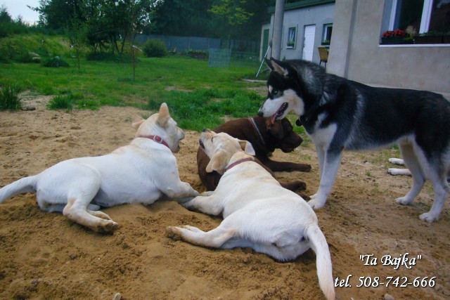 Jesteśmy hotelem młodym, mamy dużo zapału i jeszcze nie jesteśmy skażeni rutyną Staramy się stworzyć psiakom ciepłą ,domową atmosferę. Każdego pieska traktujemy indywidualnie, dokładając starań aby czuł się u nas bezpiecznie i spokojnie. Zapewniamy troskliwą opiekę, teren do wybiegania i wspólnych zabaw z naszymi łagodnymi labradorkami. W miarę moż...liwości, nasi pensjoriusze są z nami w domu. Choć posiadamy boksy w ogrzewanym budynku, (zbudowane specjalnie na użytek hotelu) są one bardzo rzadko używane. W domu pieski odpoczywają na wygodnych pontonach i są traktowane jak nasze własne pupilki.