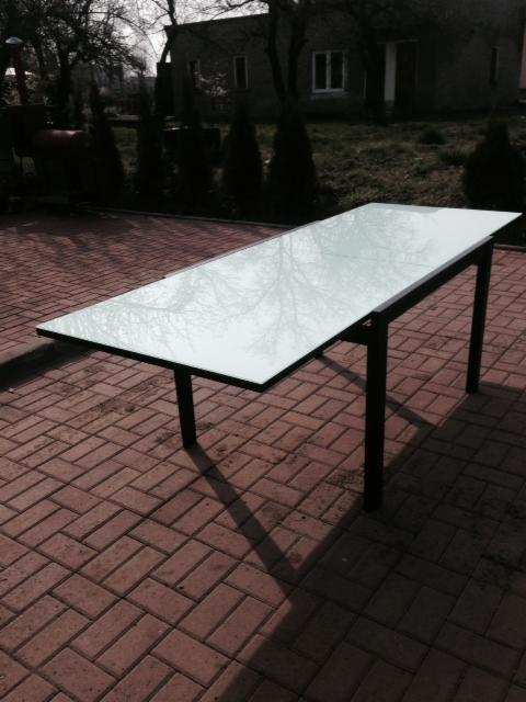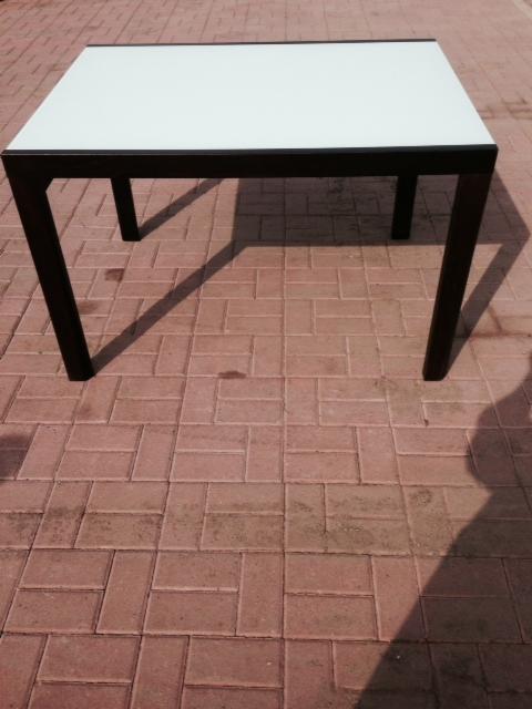 Proponuję stół z ekspozycji sklepowej (stan bardzo dobry). podstawa i rama stołu drewniana wybarwiana na wenge, blat szklany kolor biały.
