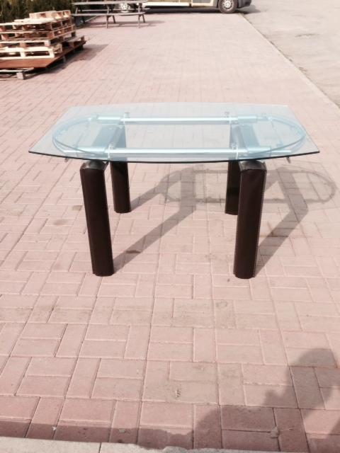 Stół rozkładany, podstawa metalowa obszyta skórą regenerowaną kolor ciemny brąz. Przedłużki wysuwają się przy pomocy specjalnych prowadnic teleskopowych. Blat szklany przeżroczysty l. Stół występuje w dwóch rozmiarach: 140x105 cm, rozkłada się do 210cm. Ten stół, jak i wszystkie inne produkty, został wyprodukowany w naszych włoskich fabrykach. Jeśl...i masz już dość tanich chińskich podróbek, to dobrze trafiłeś!!! Bądź wyjątkowy!!!