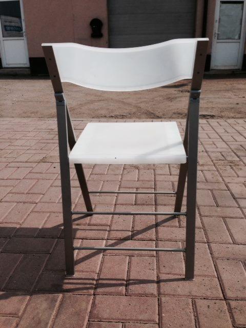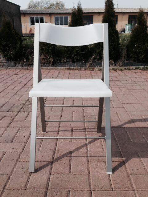Nie może zabraknąć składanego krzesła POCKET idealne do małej kuchni jak i na taras lub balkon. NOWE krzesło stelaż metalowy kolor aluminium satynowane, siedzisko z poliwęglanu matowego kolor " zmrożony"