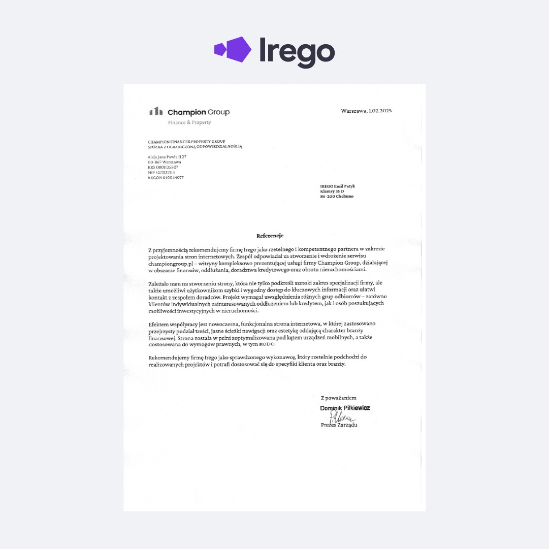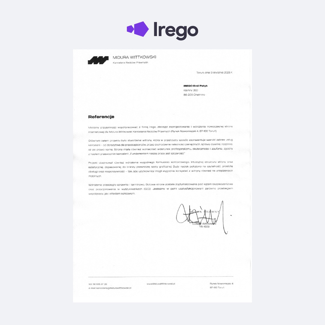 Więcej o tworzeniu stron i procesie współpracy dowiesz się z naszej strony: irego.pl/strony-internetowe/