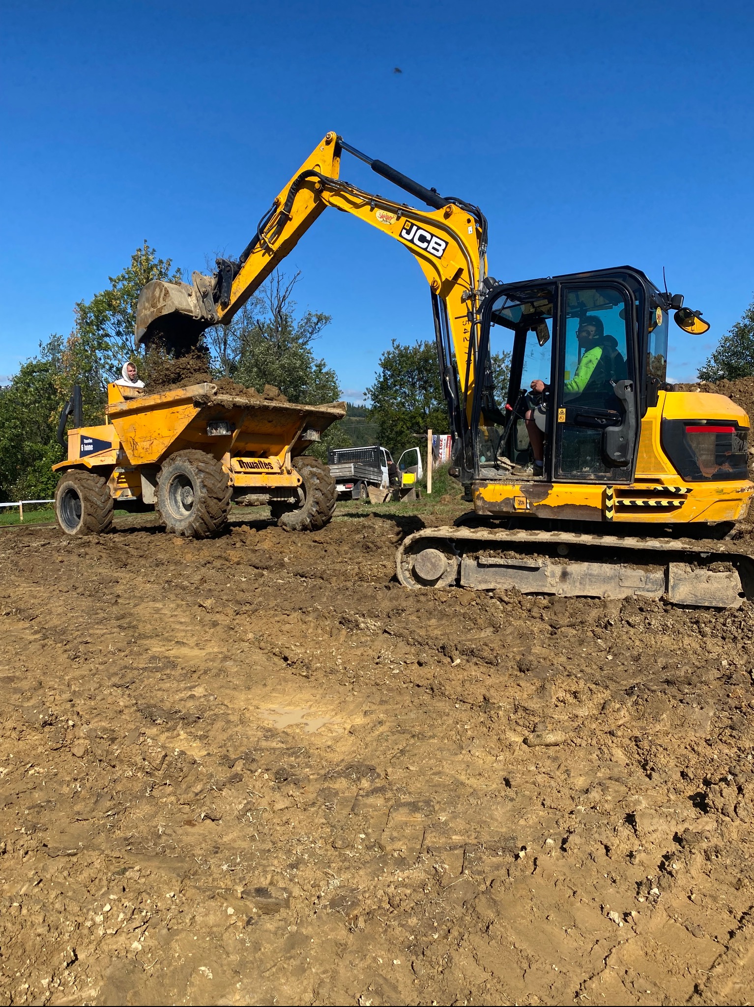 ✅ Roboty ziemne – wykopy pod fundamenty, niwelacja terenu, budowa dróg dojazdowych i parkingów, prace drenarskie i kanalizacyjne.