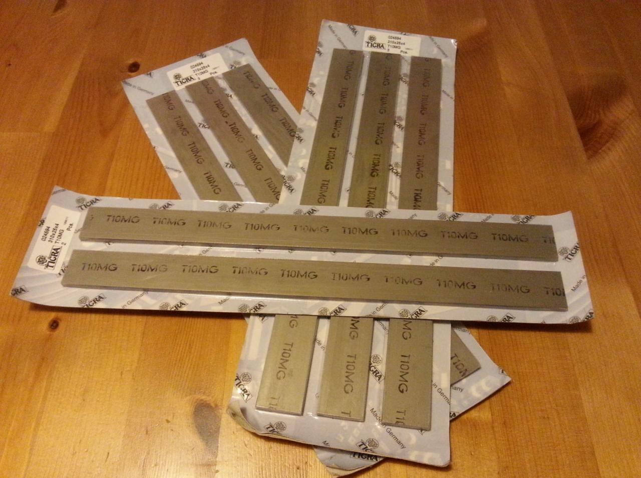 Płaskowniki stali szybkotnącej hartowane do twardości 62-65 HRC. Grubości 6,8 i 6,8 mm