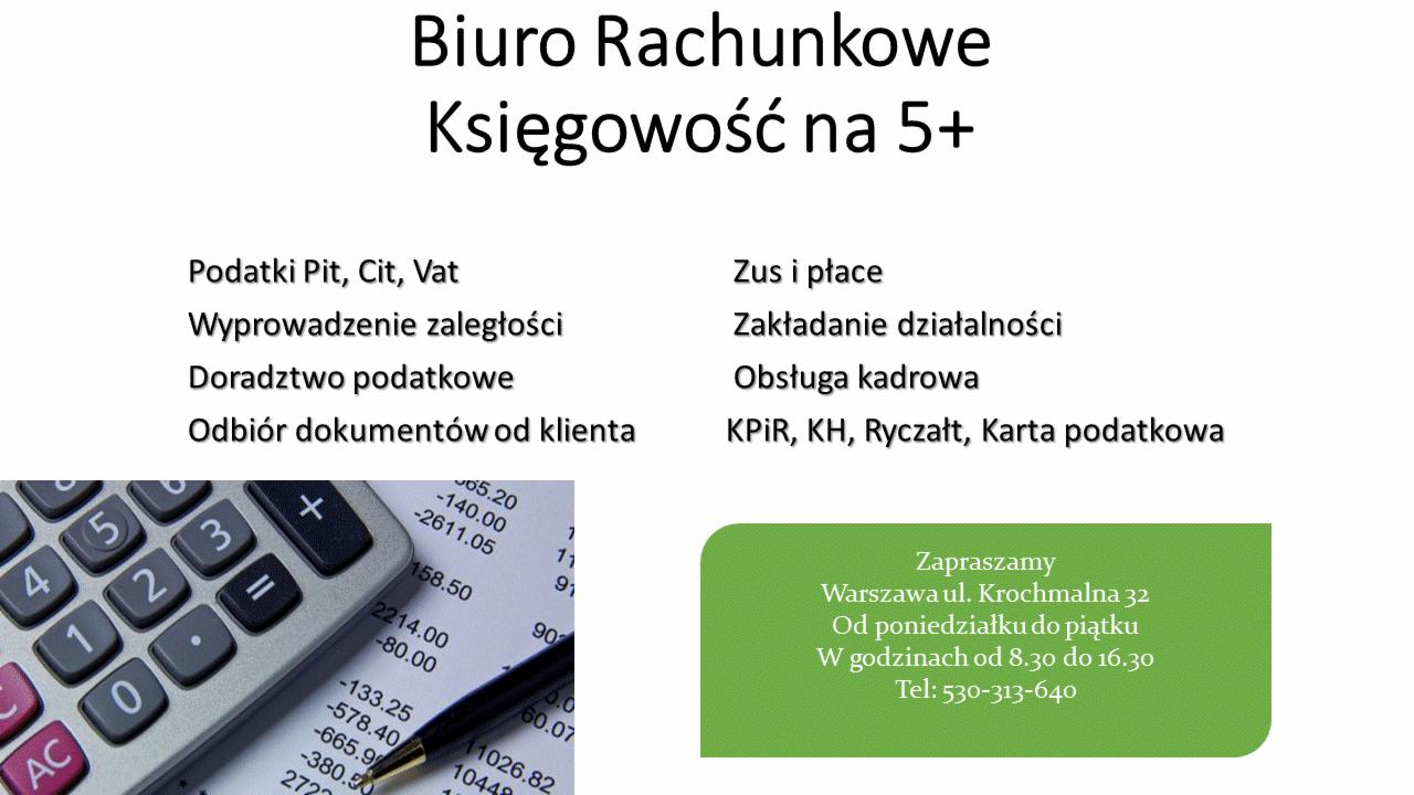 Zapraszam do naszego Biura Rachunkowego i skorzystania z Naszych usług .