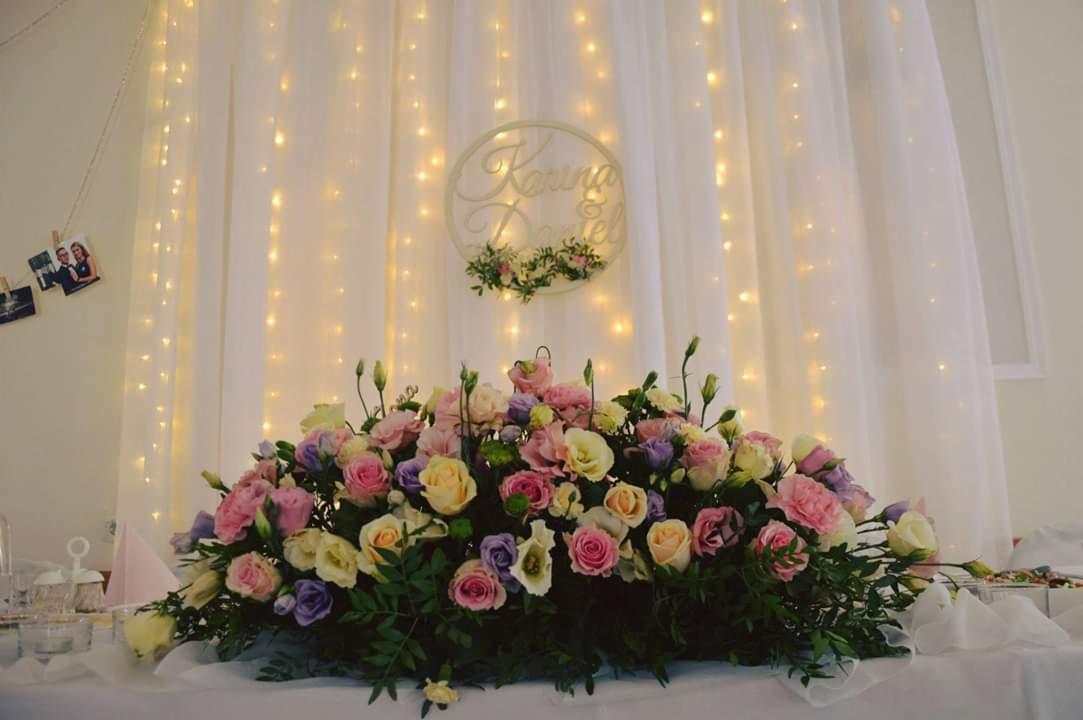 Florystyczna i dekoratorska oprawa ślubów, wesel i innych imprez okolicznościowych. Dekoracje kościoła, ślubu w plenerze, dekoracje sali weselnej, wiązanki ślubne, wianki, butonierki, przystrój auta. Wynajem napisu LOVE, białych postumentów i namiotów.