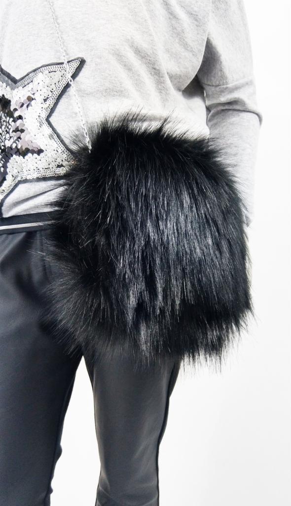 Prosty krój. Bezrękawnik. Przód ze sztucznego futra, tył czarny pikowany ze ściągaczem w pasie. Srebrny suwak.
