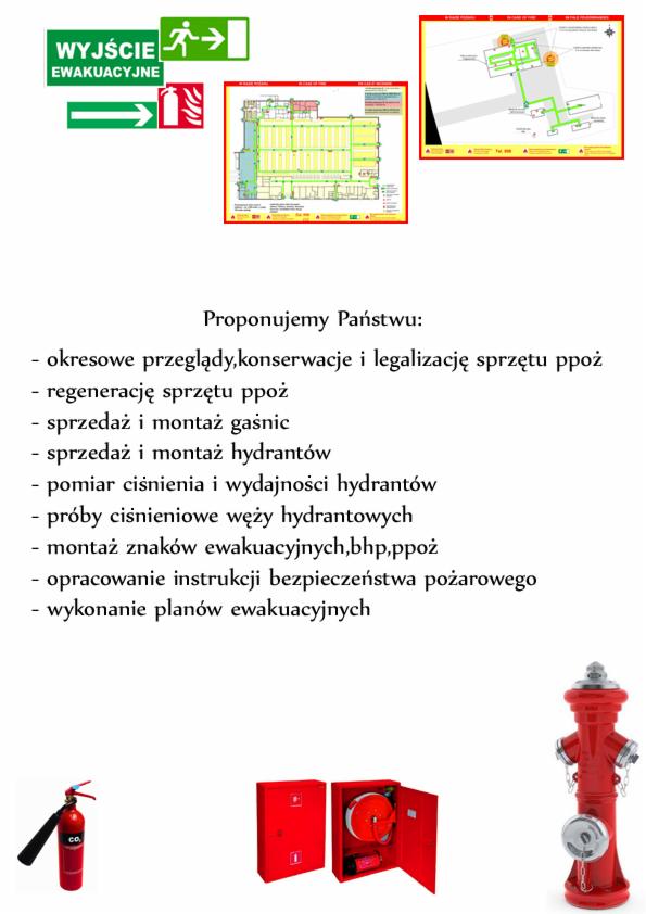 Firma Leg-Poż prowadzi działalność w zakresie ochrony przeciwpożarowej,oferujemy: