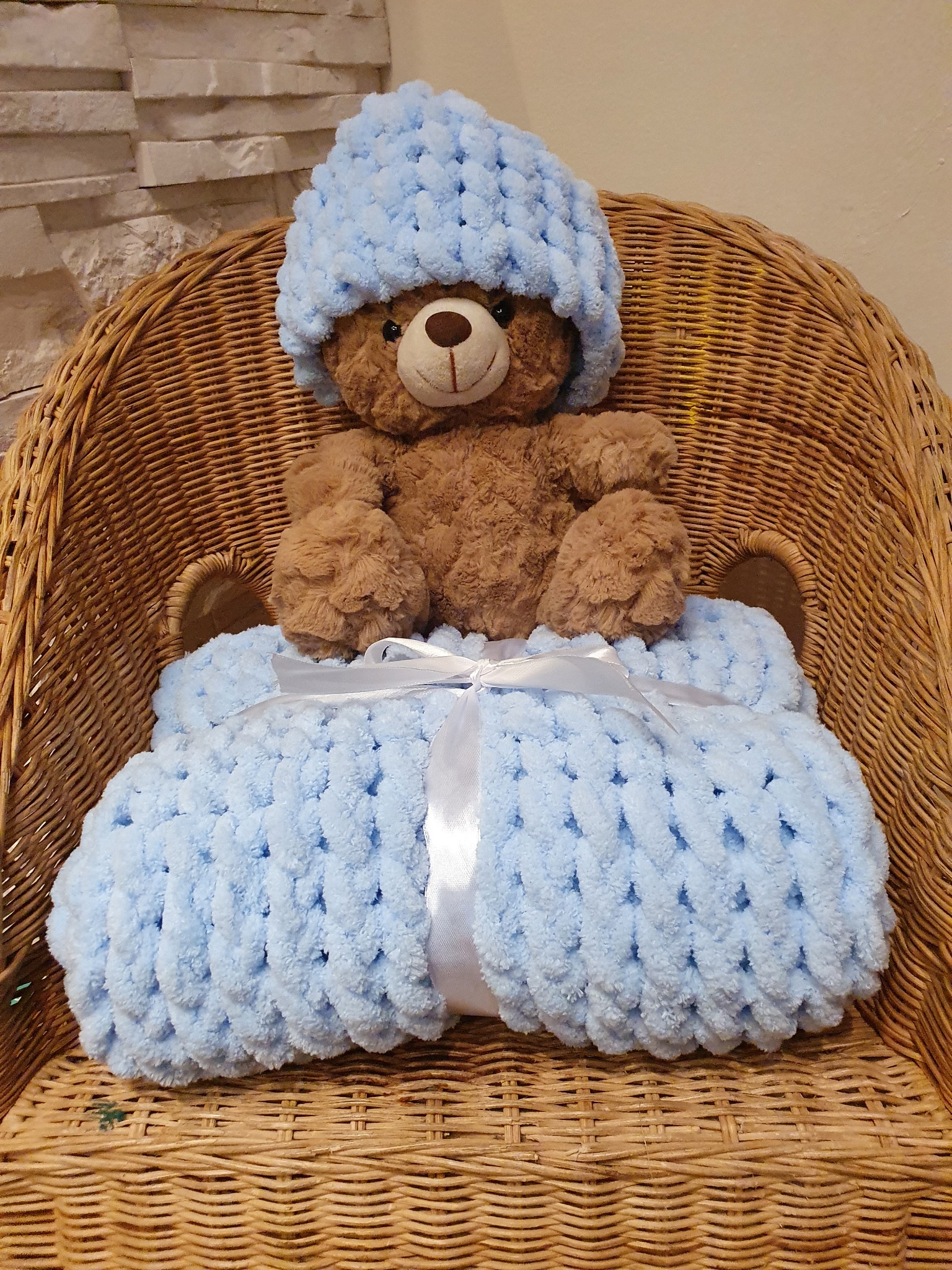 Każdy kocyk jest inny, są w rozmiarze 70x90cm (kilka ma rozmiar 70x110), niektóre mają czapeczki w komplecie. Obecnie posiadam 16 sztuk w cenie 85 zł/szt.... Mogę wystawić fakturę.