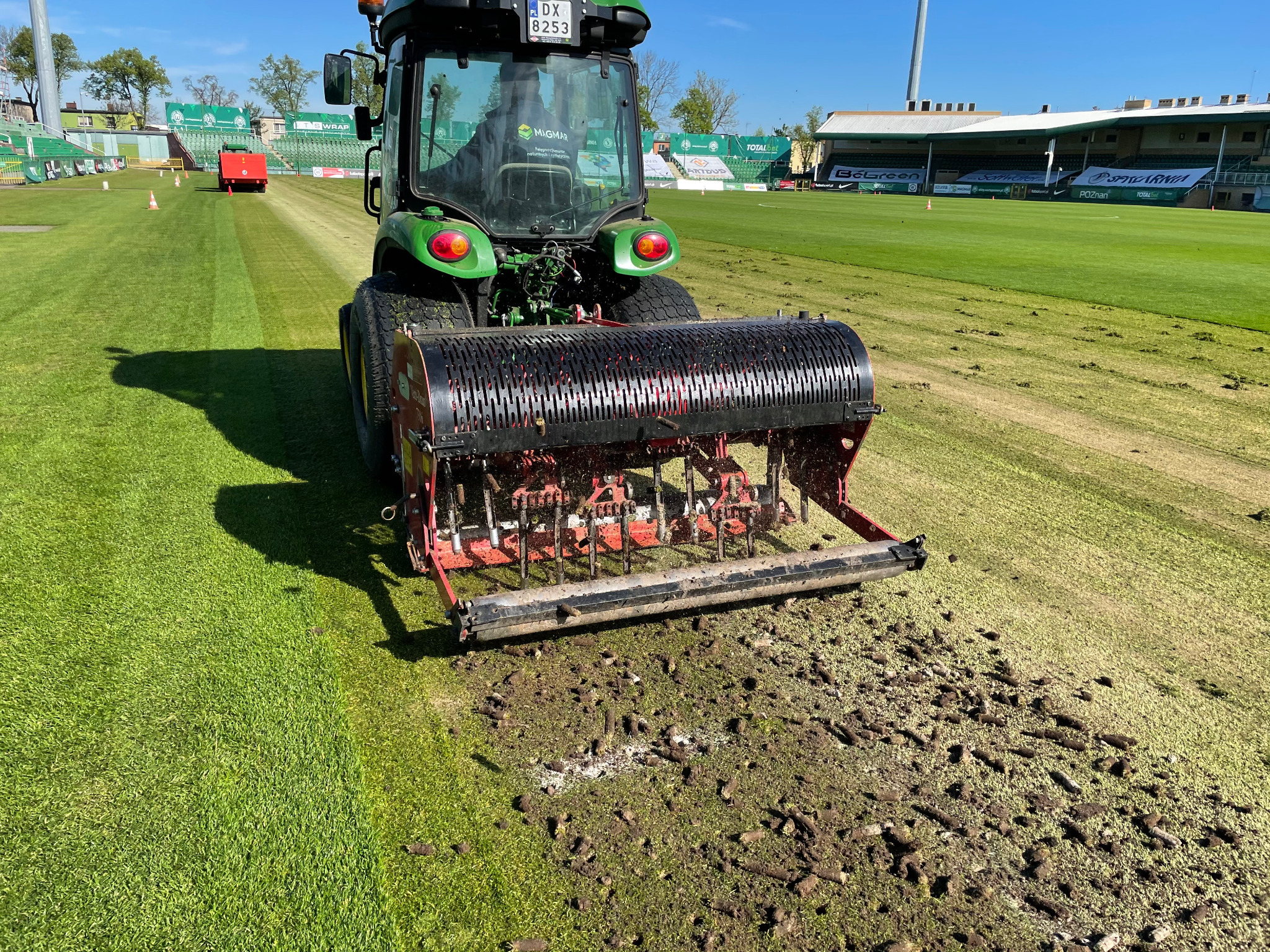Aeracja zabieg pielęgnujący murawę boiska - napowietrzanie murawy boiska