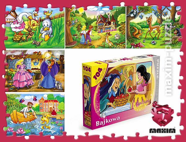 Wysokiej jakości puzzle tekturowe, produkowane w Polsce firmy MAXIM dla przedszkoli, sklepów, centrum edukacji oraz świetlic. Liczba elementów puzzli: 30, 60, 104.