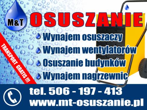 Wynajem osuszaczy i wentylatorów, osuszanie wilgoci budowlanej i po zalaniu.