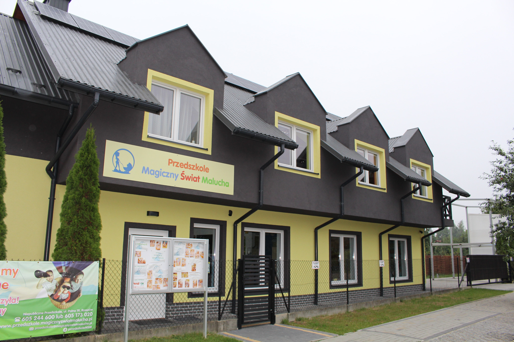Przedszkole „Magiczny Świat Malucha” przeznaczone jest dla dzieci w wieku od 3 do 6 lat. Nowy budynek został starannie przystosowany do potrzeb naszych przedszkolaków, co zapewnia komfortowe warunki rozwoju i bezpieczeństwo naszych podopiecznych. Przedszkole wyposażone jest w salę Zdobywców (58 m²), Wędrowców (43 m²), Tropicieli (67 m²), salę Odkr...ywców (33 m²), przy każdej sali znajduje się toaleta. Dodatkowo dysponujemy salą gimnastyczną (87 m²), w których poza zajęciami ruchowymi są realizowane zajęcia z integracji sensorycznej czy terapii ręki oraz salą doświadczania świata (20 m²), które pozwala w sposób innowacyjny i ciekawy stymulować zmysły dziecka. Zarówno w ciepłe i chłodniejsze dni na nasze przedszkolaki mogą korzystać z ciekawie zaaranżowanego i przestronnego ogrodu o powierzchni 260 m².