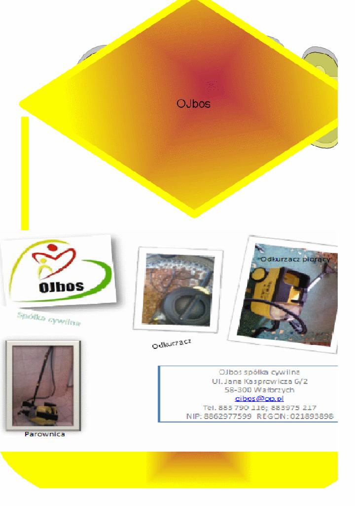 OJbos spółka cywilna ul. Jana Kasprowicza 6/2, 58-300 Wałbrzych. tel. , NIP: REGON: