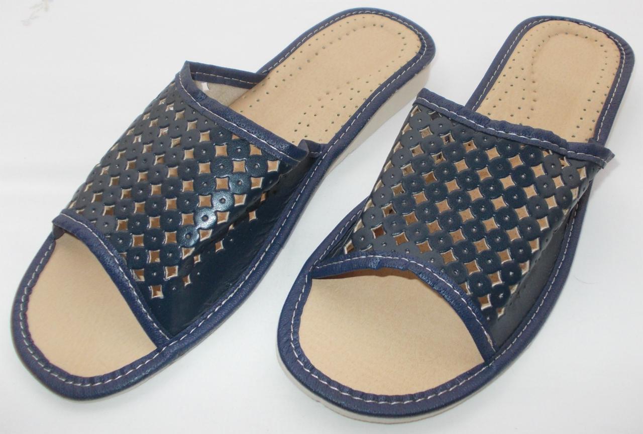 Pantofle wykonane są ze świńskiej skóry i skóry licowanej, posiadają miękką, profilowaną wkładkę ortopedyczna z perforacją dzięki której są bardzo wygodne.