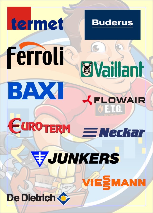Junkers, Vaillant, Euroterm, Buderus, Termet, Ferroli, De Dietrich, Neckar i inne marki.