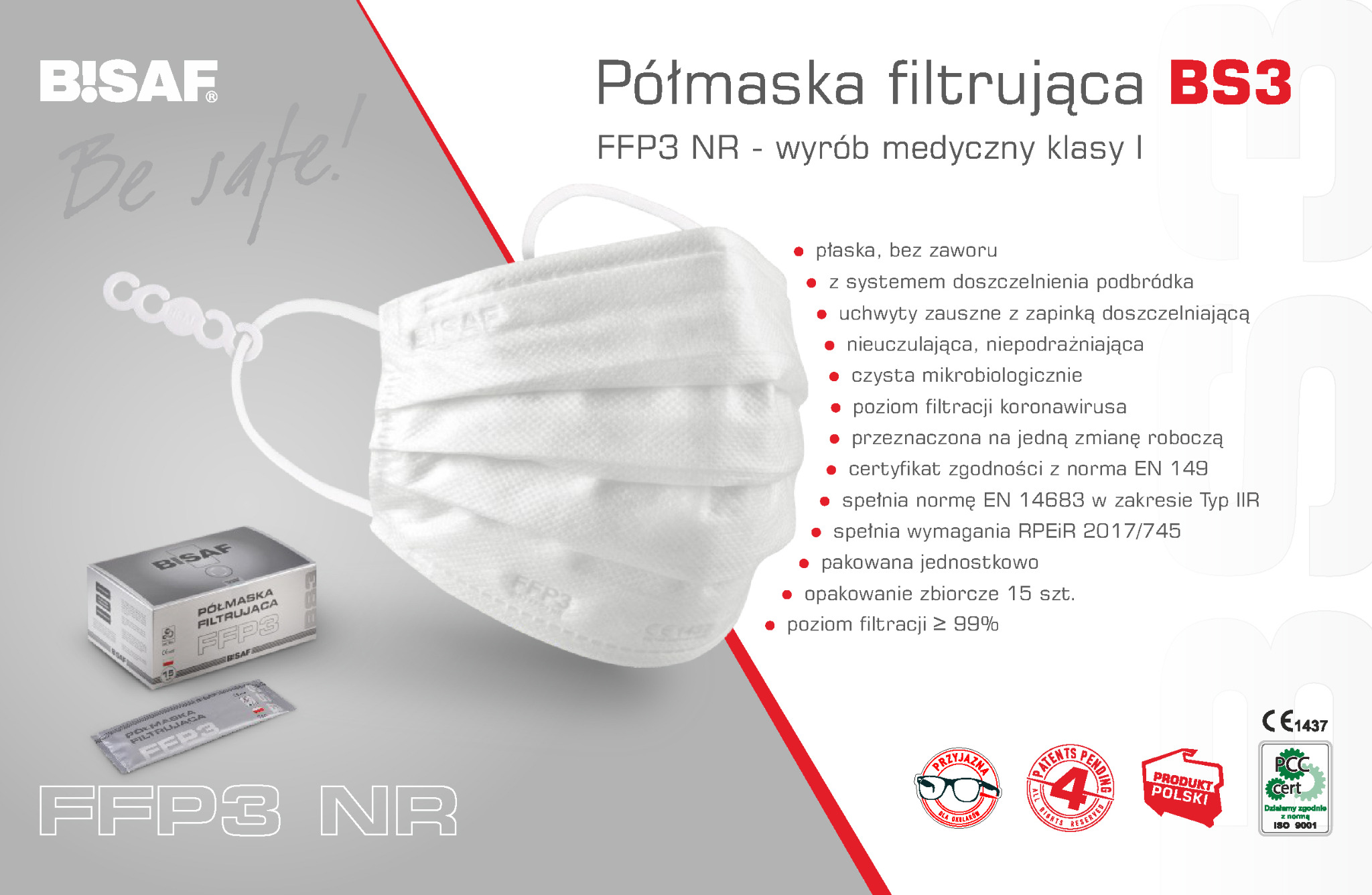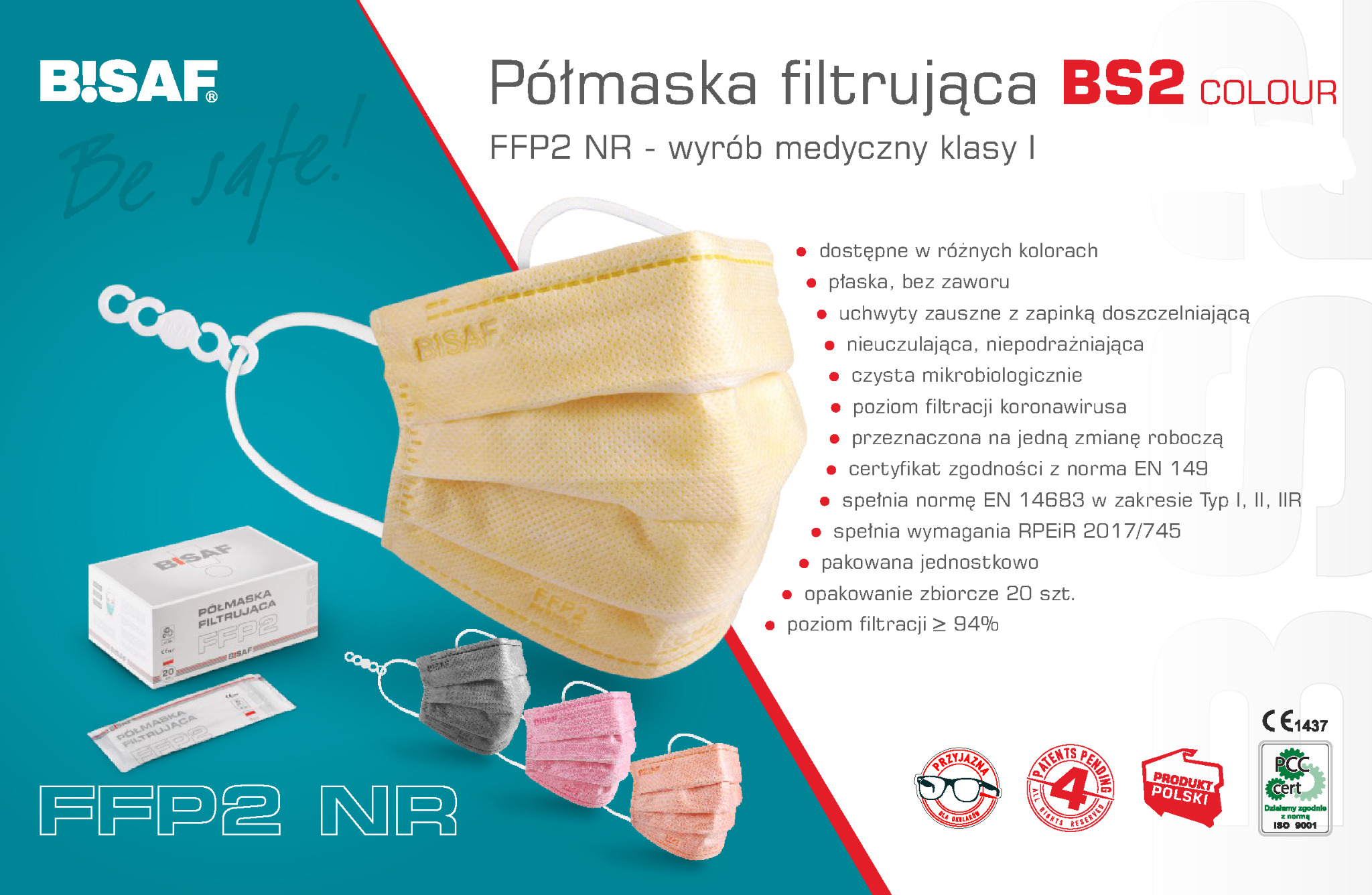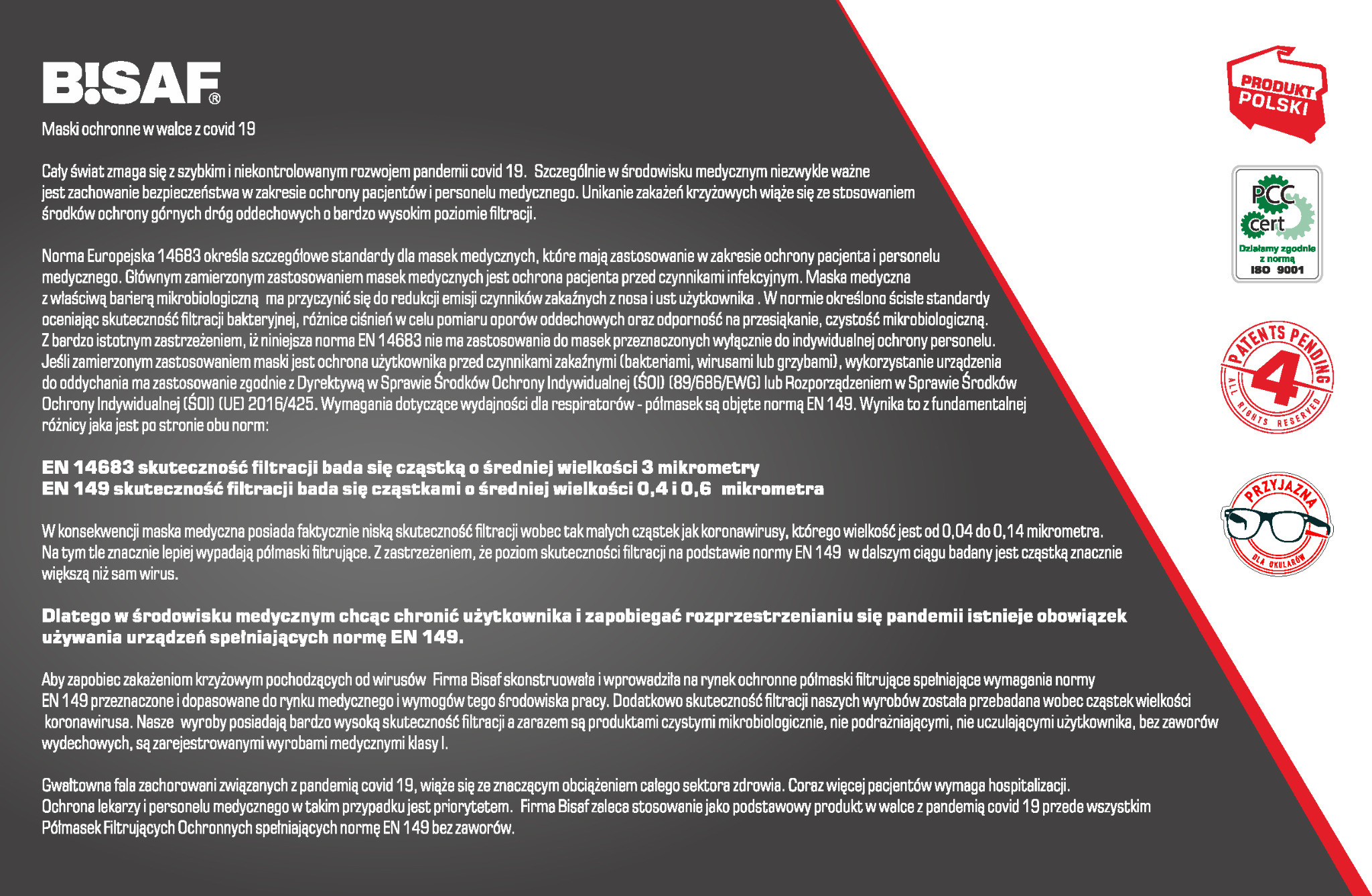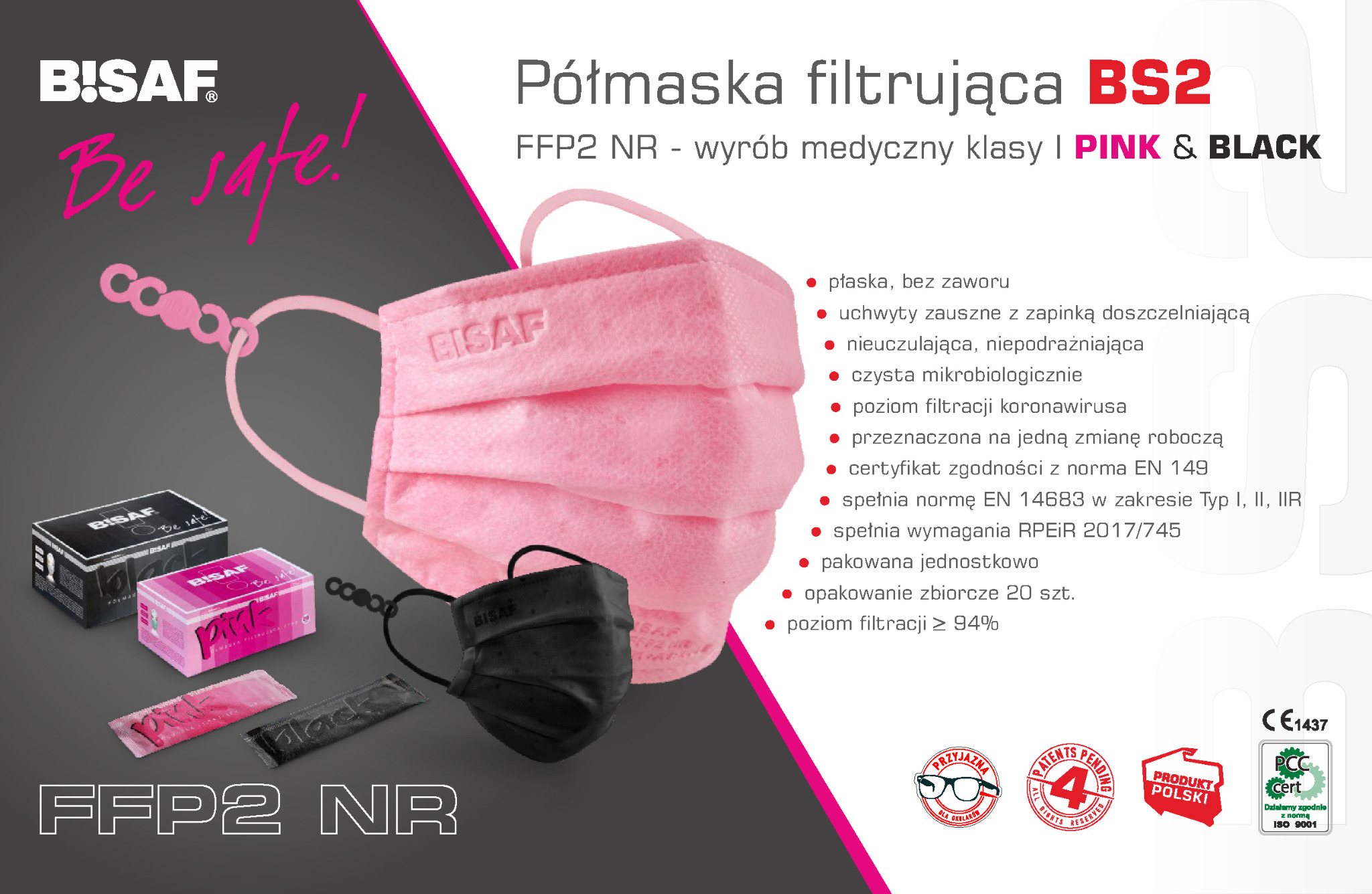 - maski Bisaf to jedyne w Polsce maski FFP2 i FFP3 w wygodnym kształcie maski medycznej