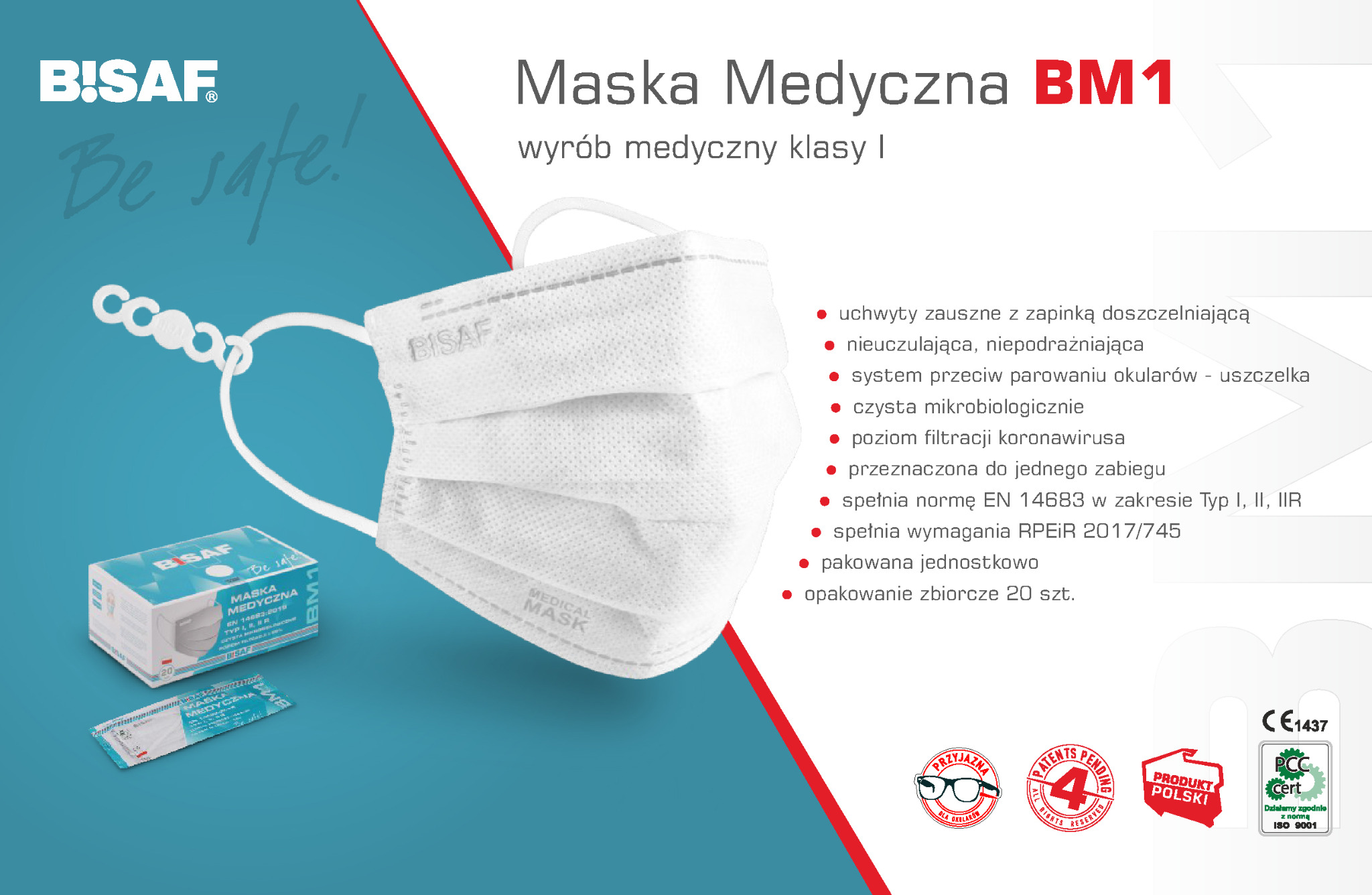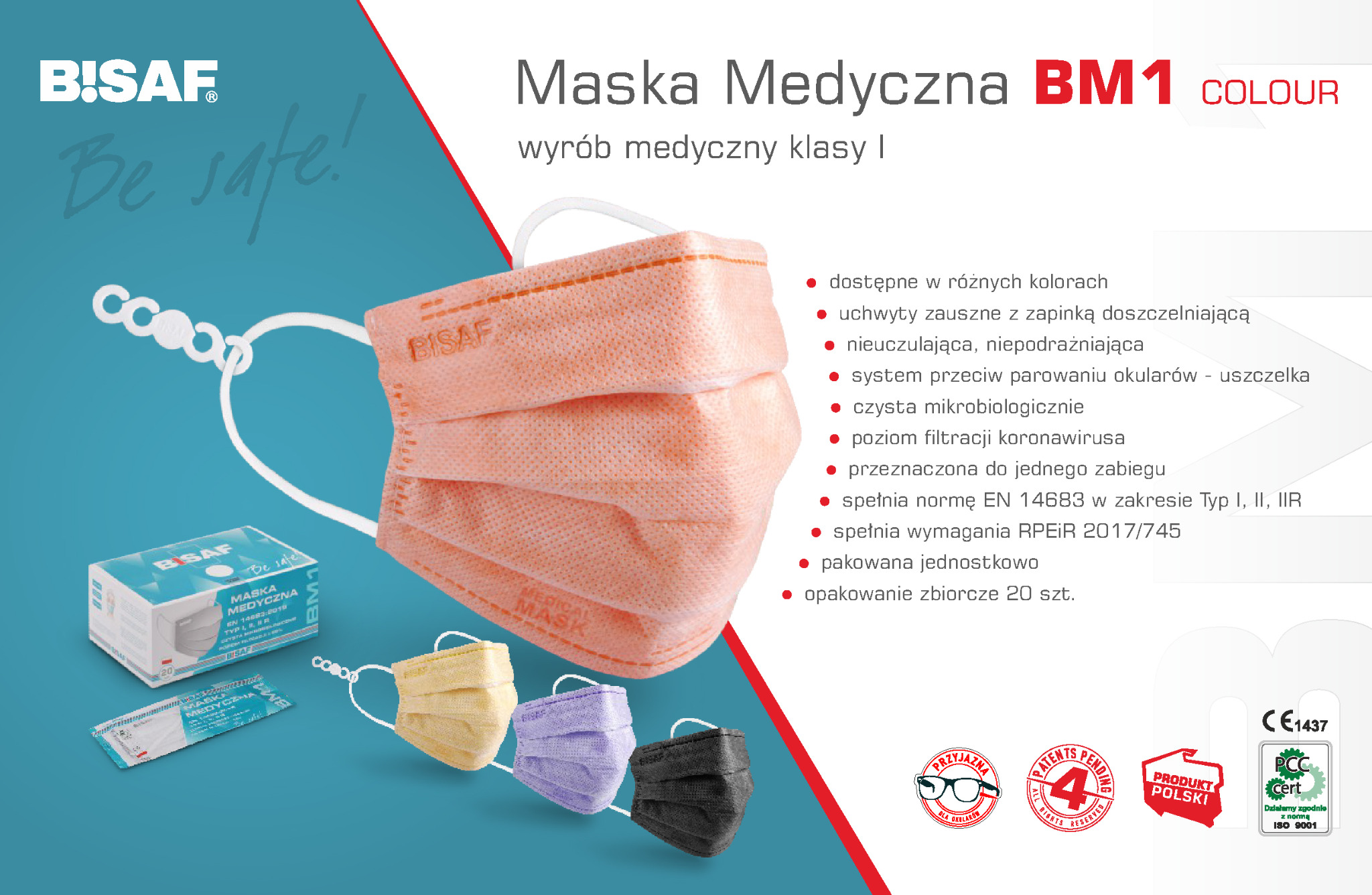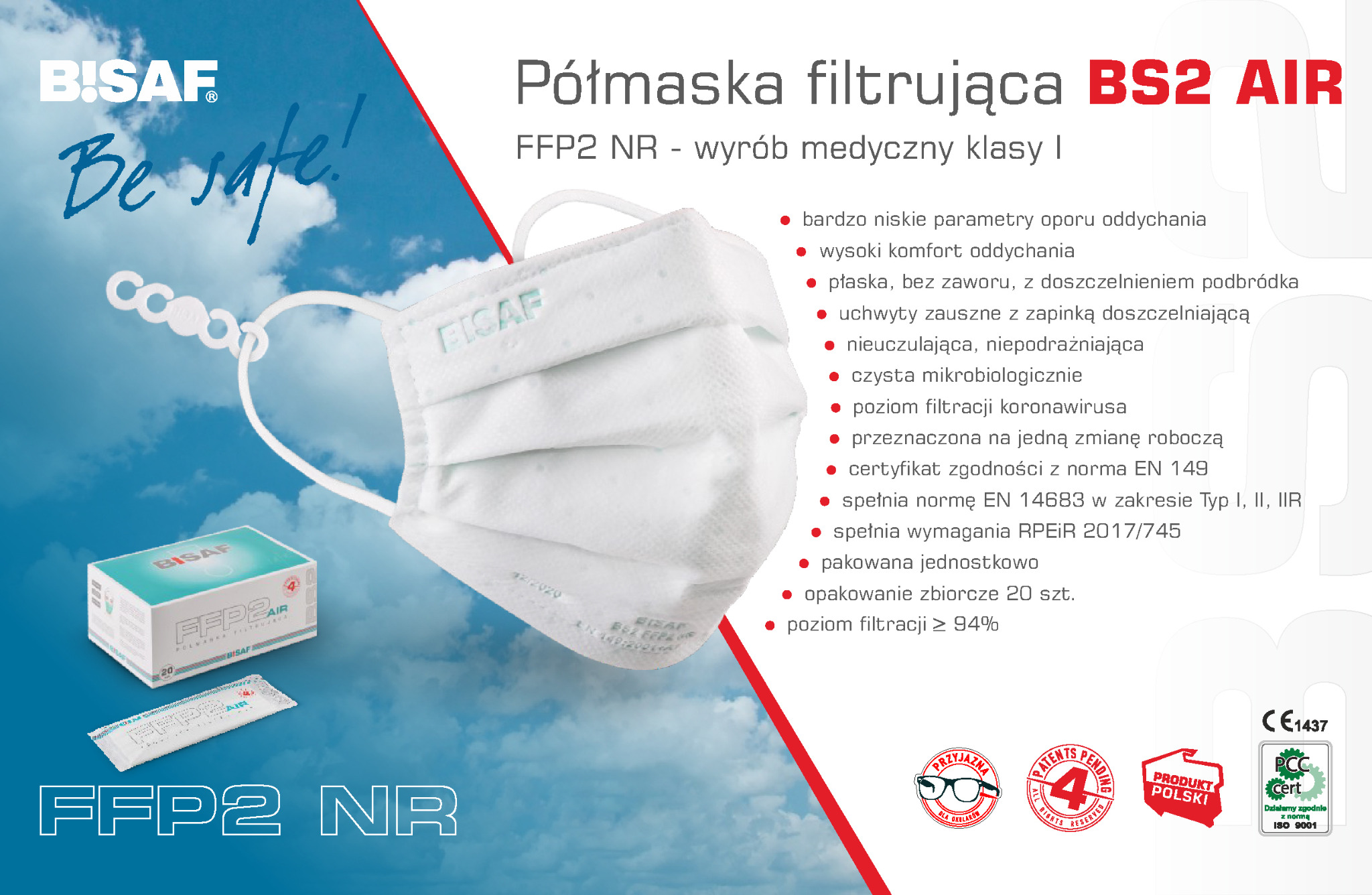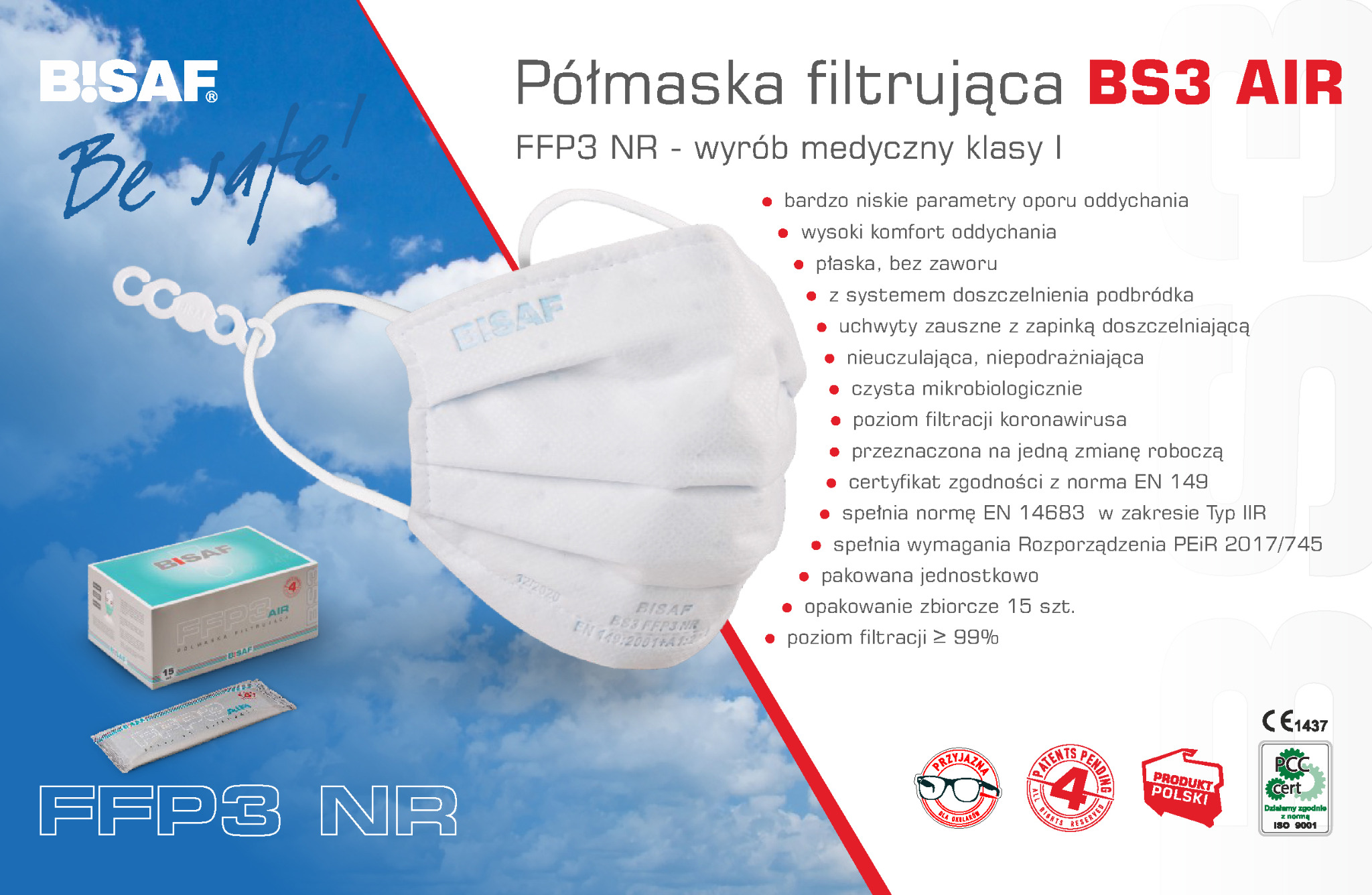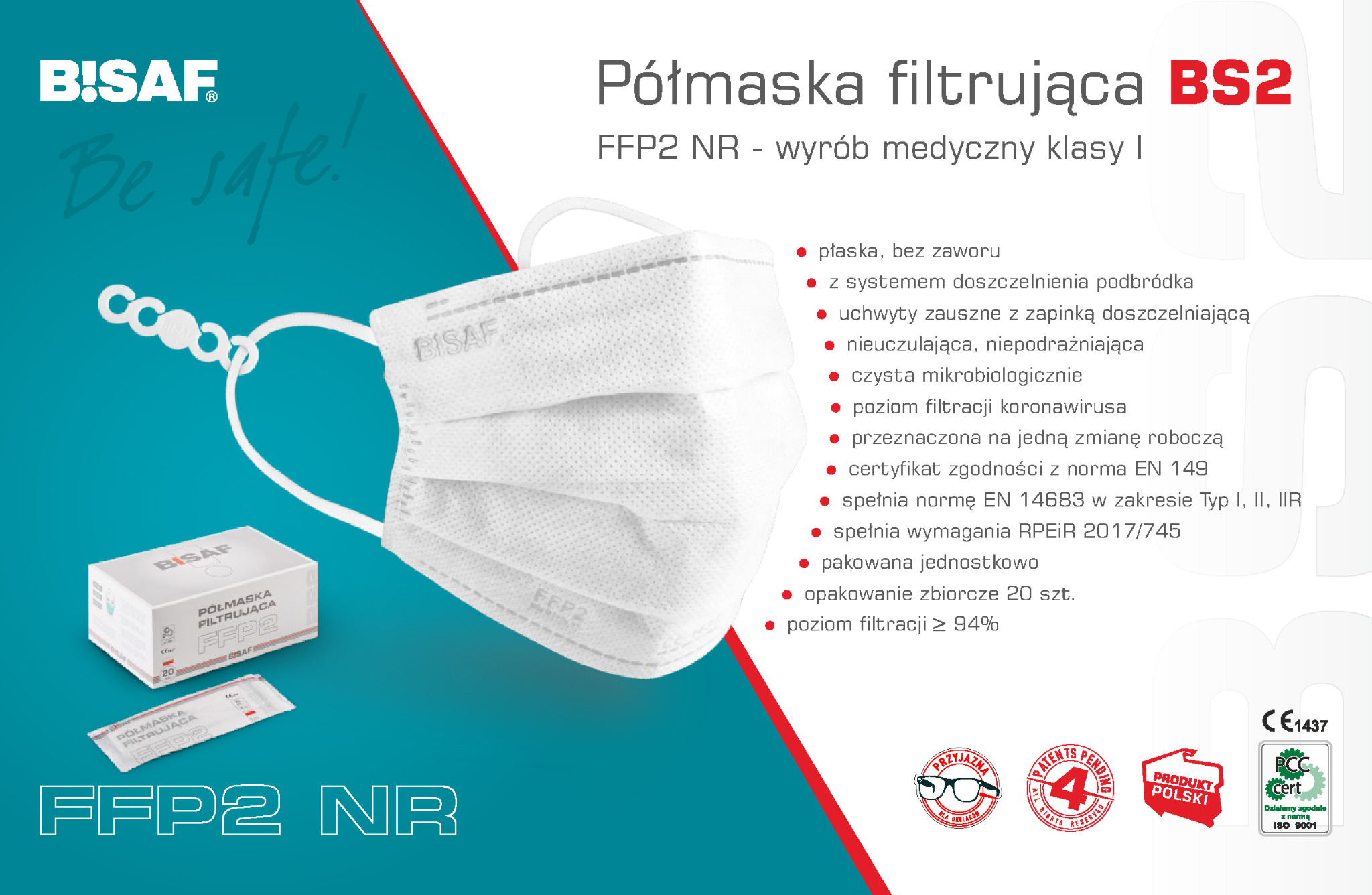 - maski Bisaf to jedyne w Polsce maski FFP2 i FFP3 w wygodnym kształcie maski medycznej