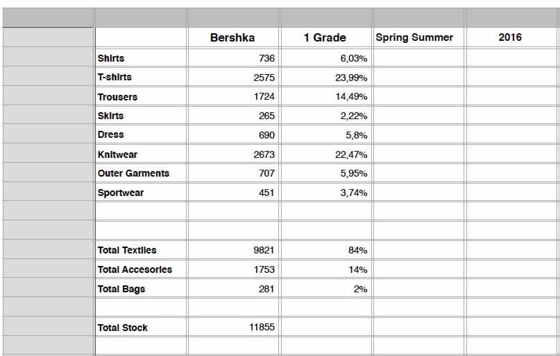 Stock Bershka 2016 Wiosna/Lato 1 gatunek