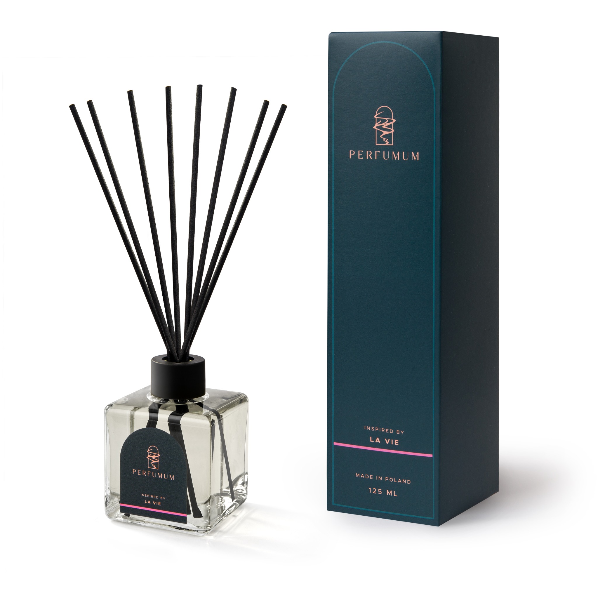 Perfumum inspired by La Vie to ekskluzywny zapach o słodko-owocowej nucie. To symbol wolności i szczęścia. Soczysta esencja czarnej porzeczki i świeżej gruszki zmysłowo komponuje się z irysem, jaśminem i kwiatami pomarańczy. Egzotyczna woń paczuli oraz fasoli tonka wzbogaca intensywność zapachu. Chcemy, aby przestrzeń, w jakiej się znajdujesz, pach...niała tak świetnie, jak Twoje ulubione perfumy. Tworzymy zapachy, które przywołują wspomnienia, pachną jak ukochana osoba, otulają Cię uczuciem odprężenia i komfortu. Perfumum to bukiet emocji skryty w szklanej buteleczce. To luksus, na który możesz sobie pozwolić.