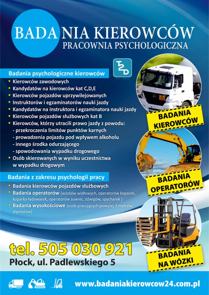Badania psychologiczne kierowców i operatorów maszyn.