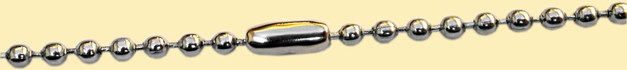 Łańcuszki kulkowe z zapięciem. W odcinkach lub na metry. Niklowane, kolorowe lub polerowane ze stali kwasoodpornej.